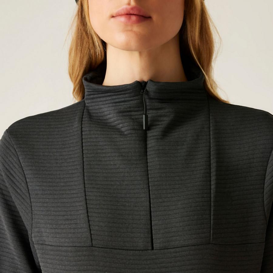 The Dare2b Iced Quarter Zip Core Stretch women's midlayer is built from polyester with Ilus Stretch for movement.