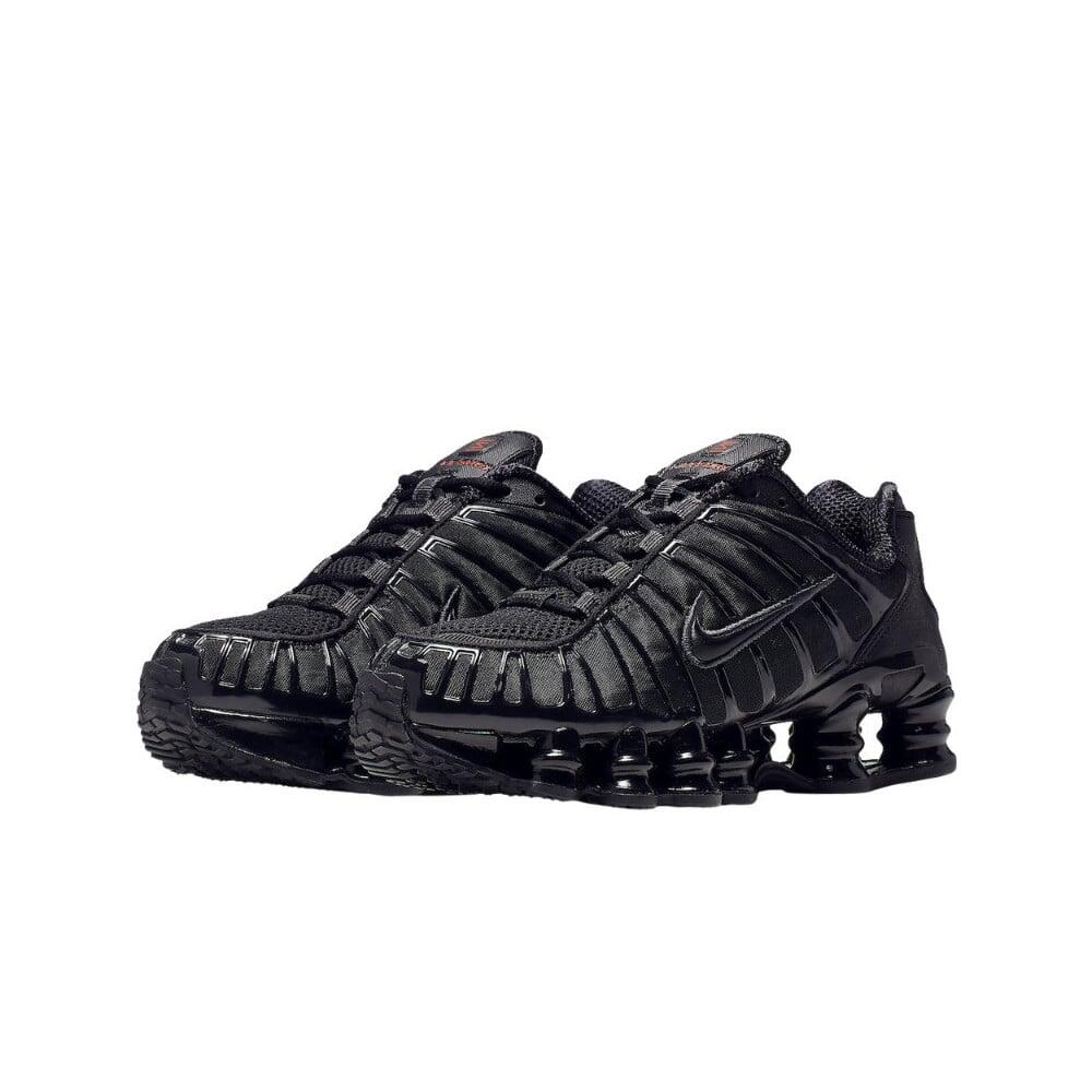 Nike Shox TL women's sneakers in black and metallic, stylish and comfortable for everyday wear and lifestyle.