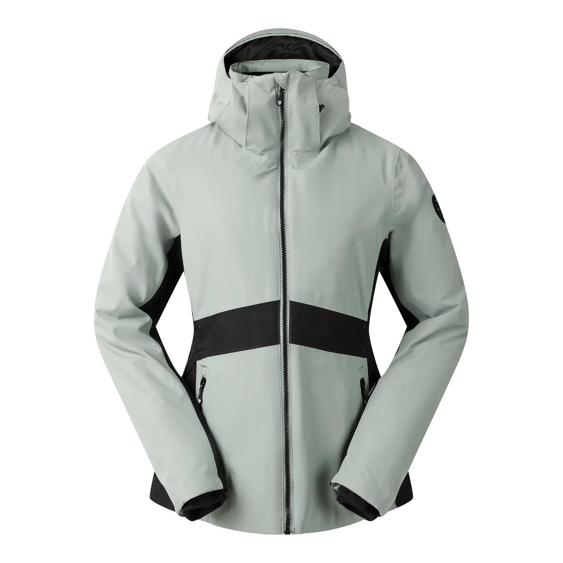 Designed for the slopes, our women's ski jacket Issy combines high performance with style. It is made from waterproof ARED 15/15 fabric and features insulation, all in a tailored and flattering fit. The zip pulls adorned with Swarovski crystals add a touch of sparkle, while ski-specific details and cozy inner cuffs provide comfort, warmth, and functionality.