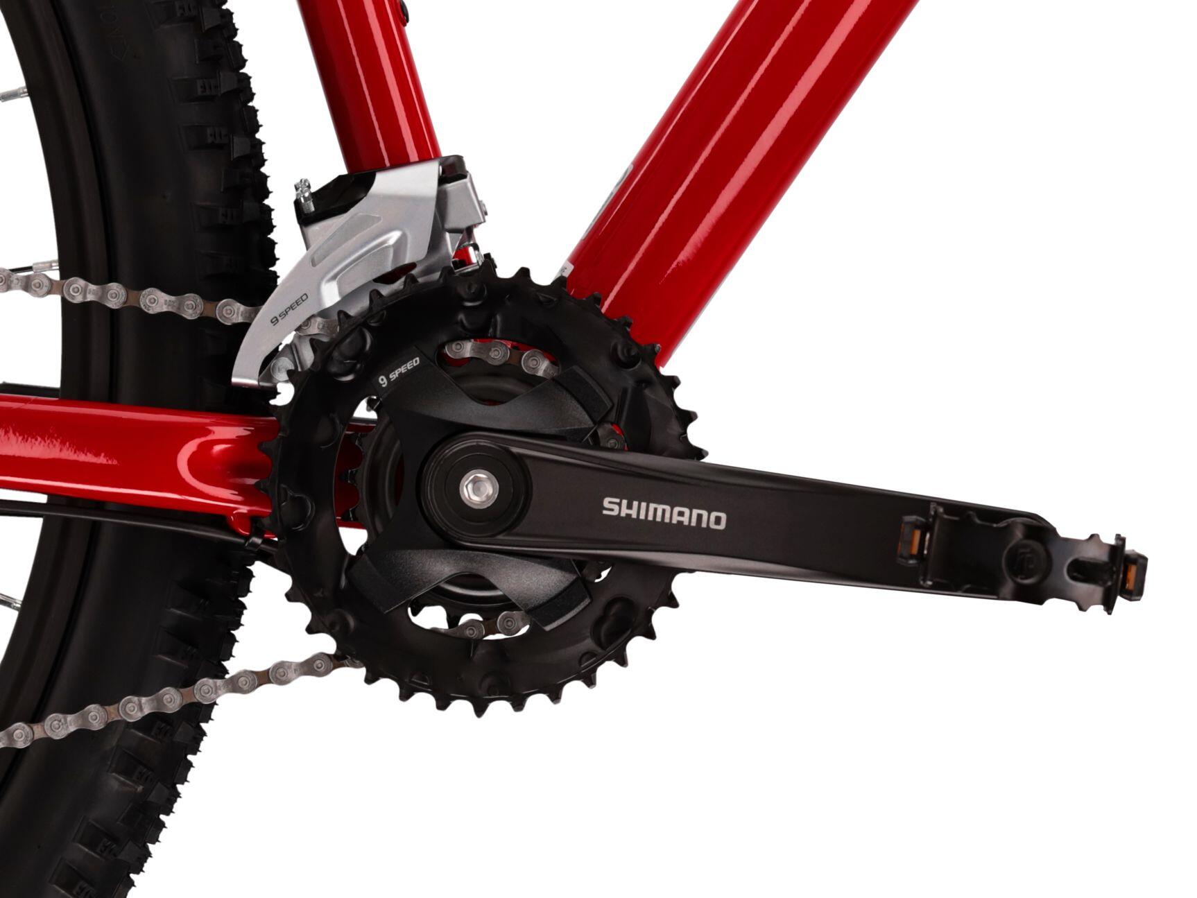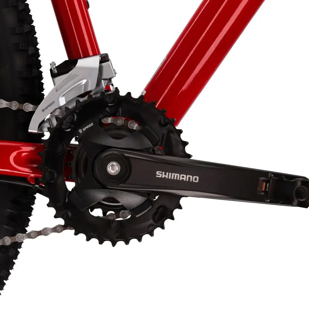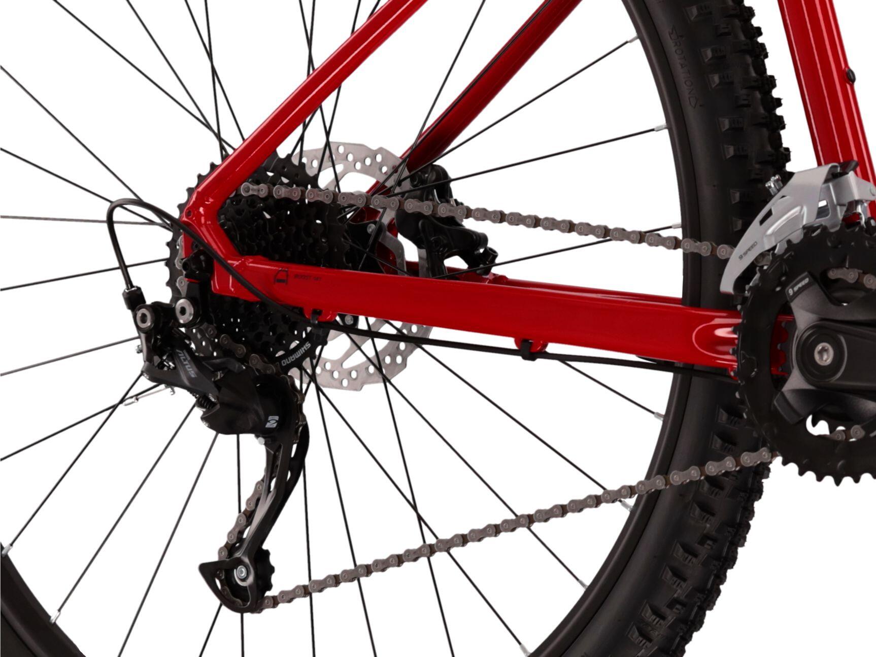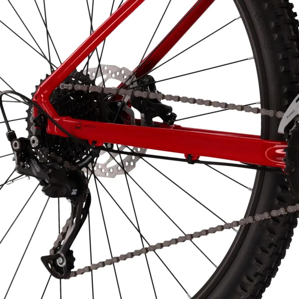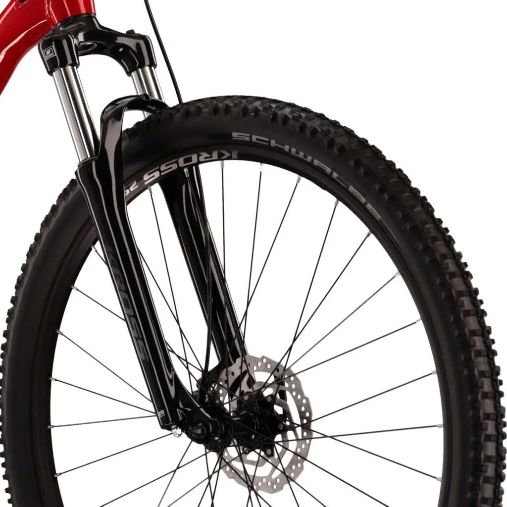 Kross Level 1.0 red MTB, Lite aluminium frame, 29" with SR Suntour suspension, 18 speeds and hydraulic disc brakes for off-road rides.