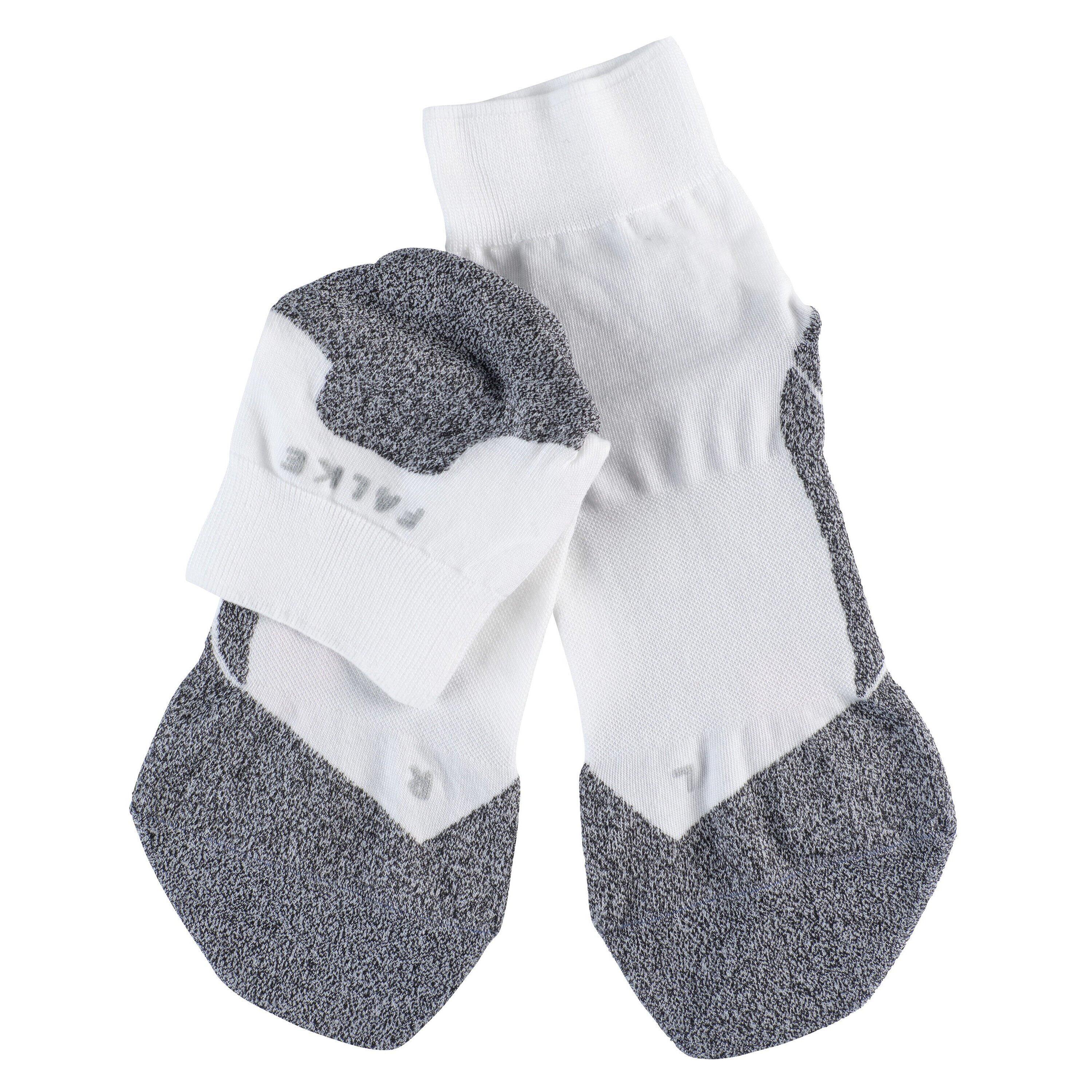 Thanks to their thin sole, the « RU4 Light » ankle socks are perfect for walkers who value direct force transmission and immediate contact with the shoe. The light cushioning reduces pressure points and thus protects against blisters. Quick moisture wicking and the FALKE anatomical fit ensure great comfort and a perfect hold. The best conditions for a successful competition!