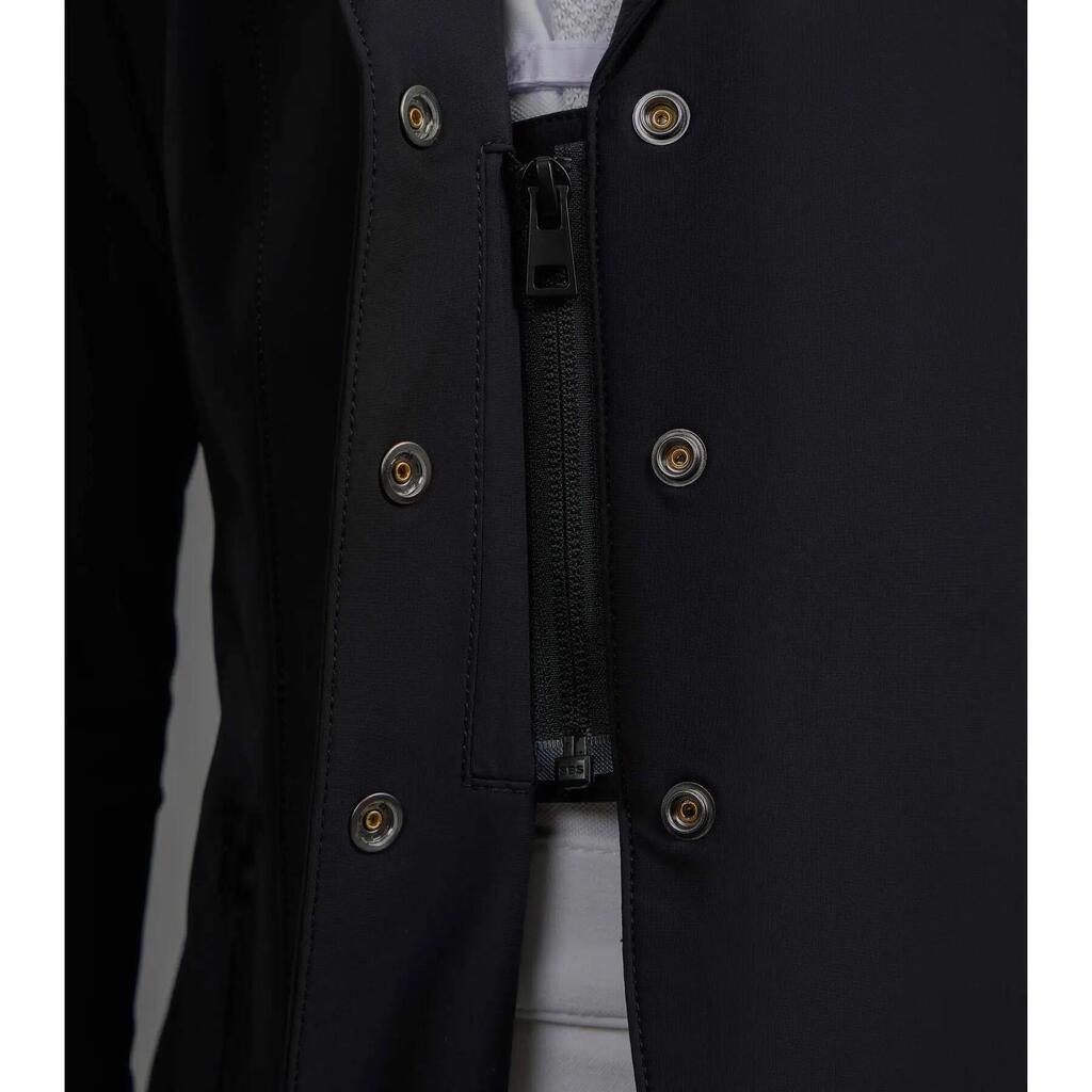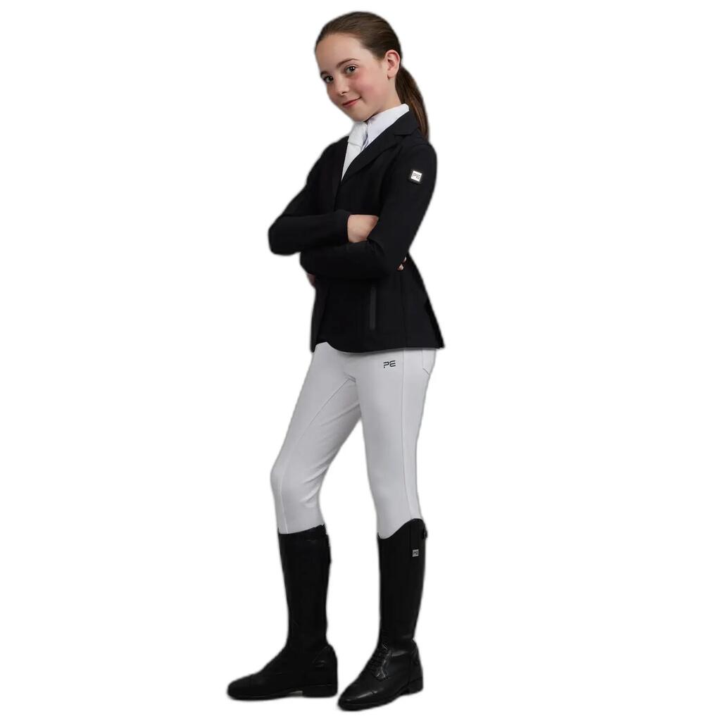 With a classic cut, this competition jacket is designed to offer a flattering silhouette, featuring meticulously placed style lines. A traditional notched collar sits atop a concealed YKK zipper, topped off with a clean snap button. Two pockets provide space to store your valuables, with added security from the matte-finish zippers. The subtle matte style continues through the details of this jacket, including branded snap buttons and PE branding around the wrist. Our signature chrome PE badge is located on the left arm of the rider, ensuring continuity with our existing collection. A debossed PE shape is elegantly placed on the right arm of the rider, highlighting the quality and functionality of this luxury performance jacket.