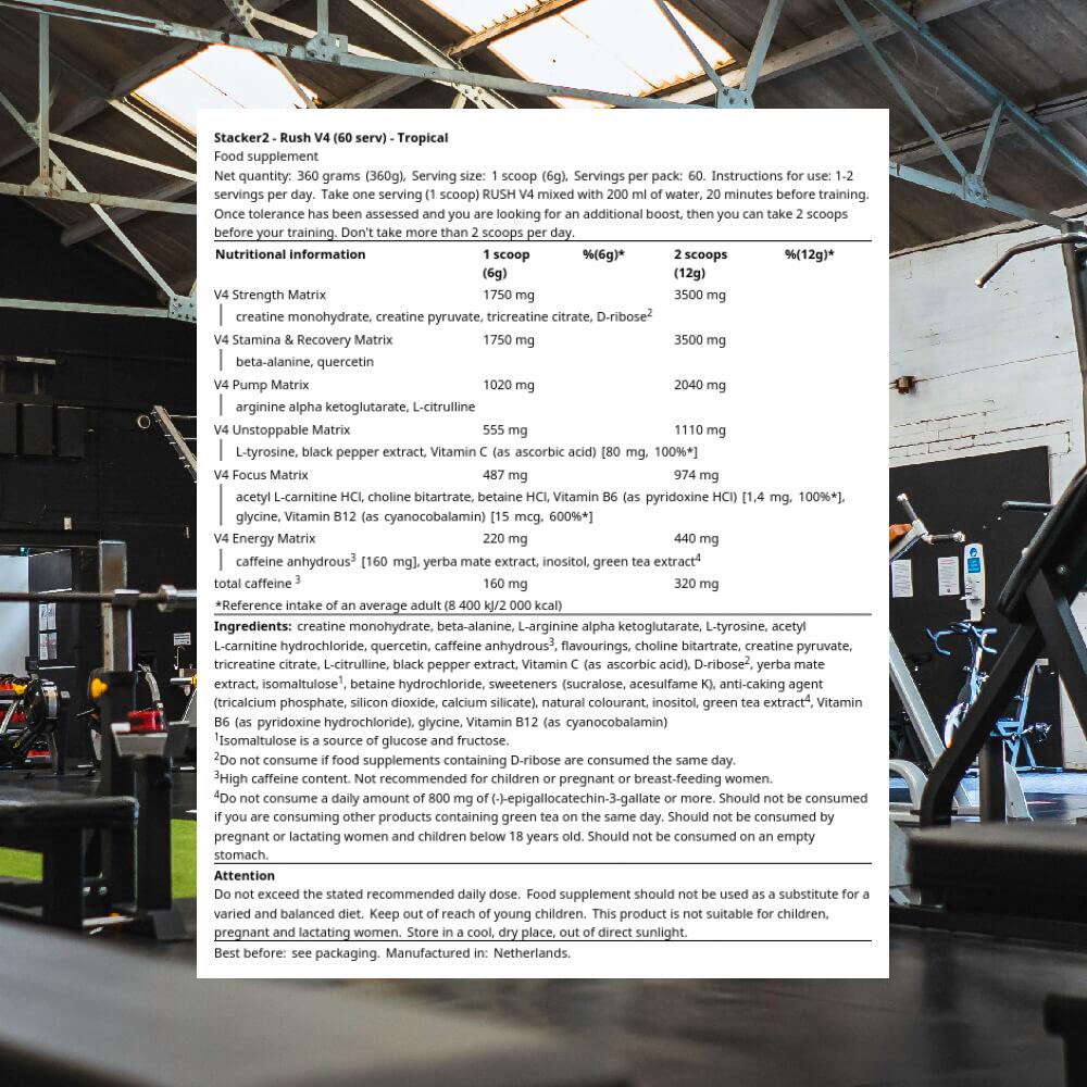 Stacker2 Rush V4 (60 serv) Tropical - Pre-Workout - Pre-Workout Booster