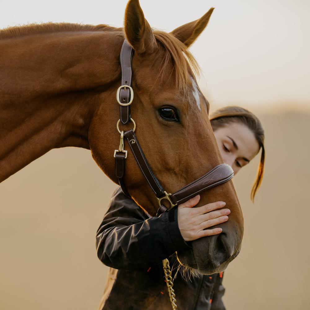 Equip your horse with the Dy’on leather halter for travel and grooming in style and comfort.