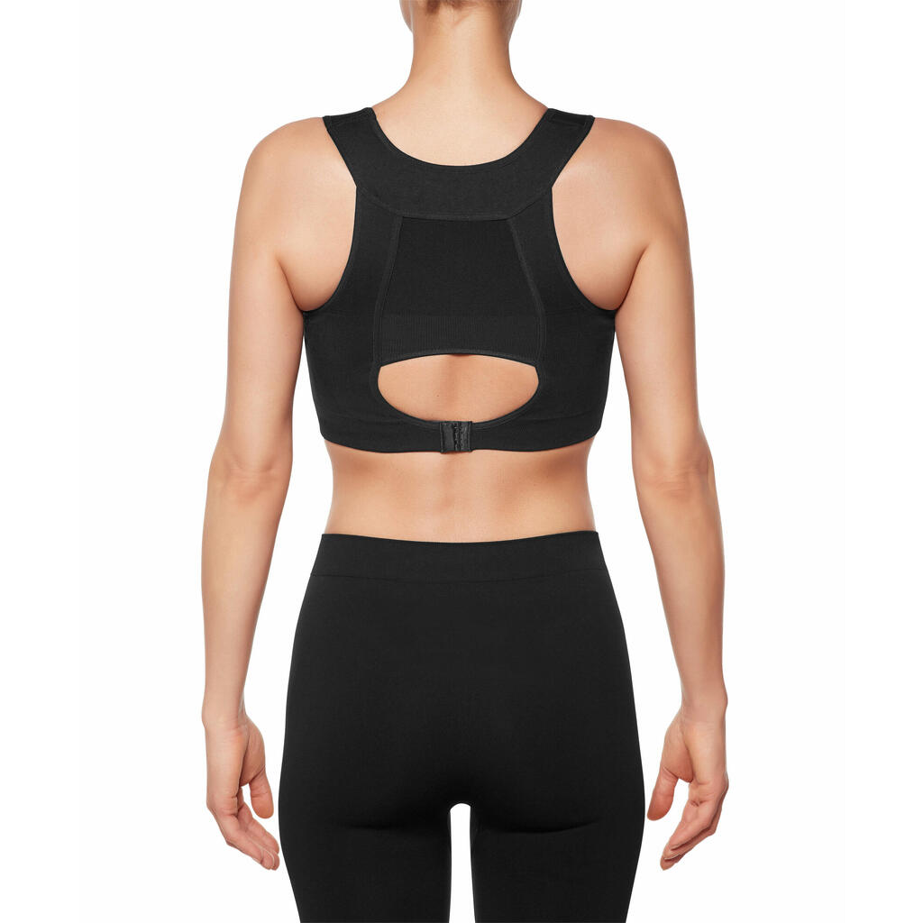 This bra is ideal for cup sizes C and D and is perfect for sports requiring higher levels of activity. Thanks to its seamless construction, this bra has no annoying side seams and is highly elastic. Its double-layer material structure ensures fast drying. The compression zones and the strong ribbed texture in the middle of the back and under the chest guarantee optimal support. A breathable mesh structure is located between the cups. The soft material and individual width adjustment under the bust guarantee maximum comfort.