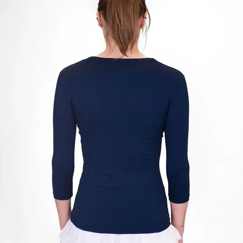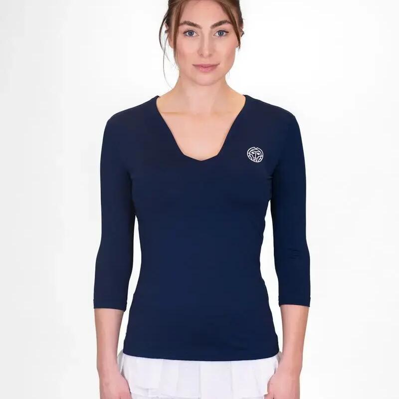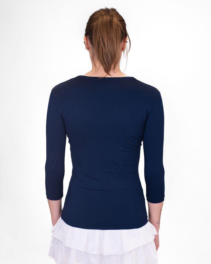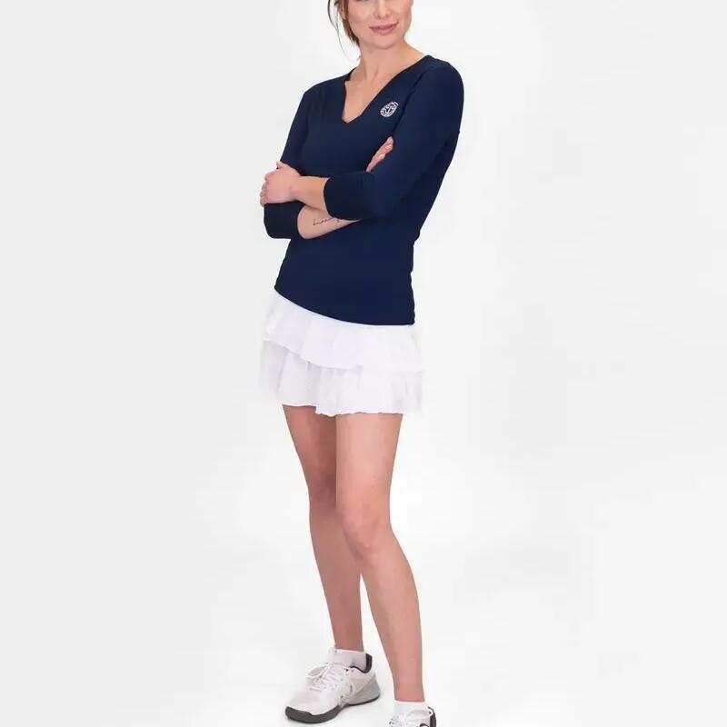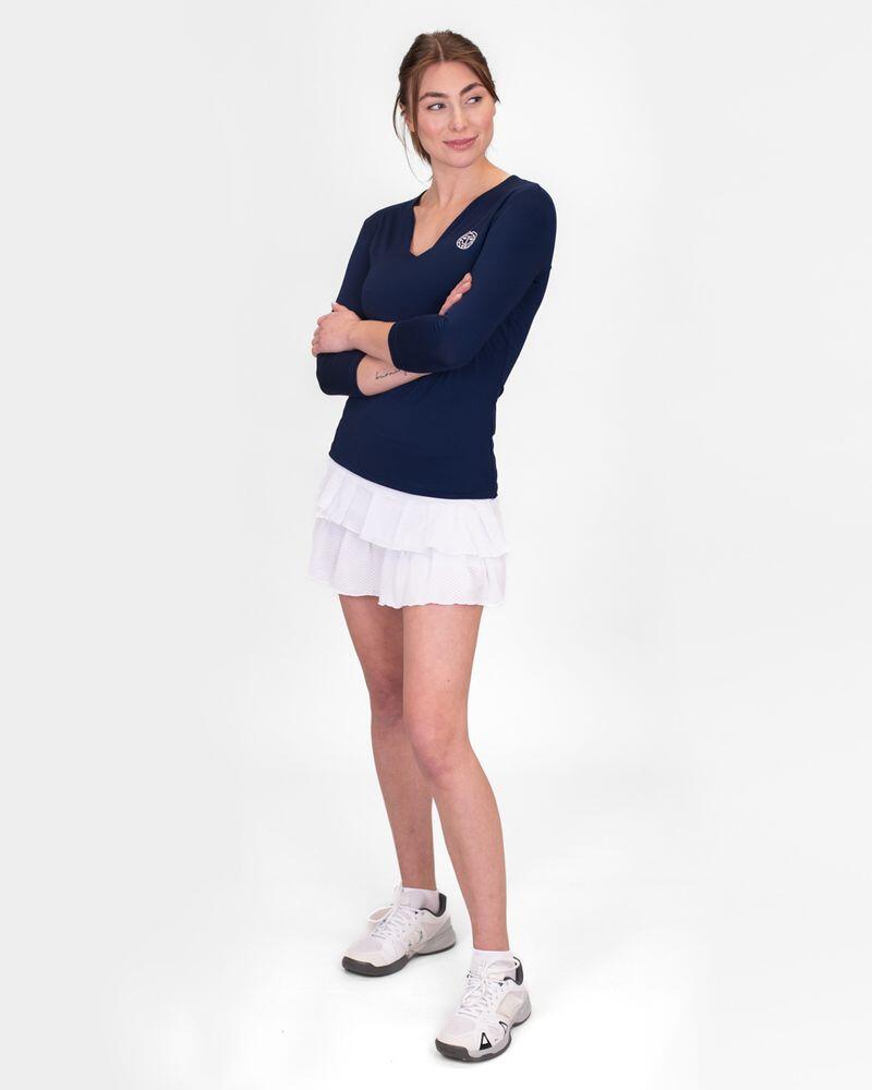 The eye-catching feature is the unusual V-neck, which makes this rather ordinary garment an eye-catcher. The cut is tailored and close to the body. The 3/4 sleeves, created especially for tennis, add the finishing touch.