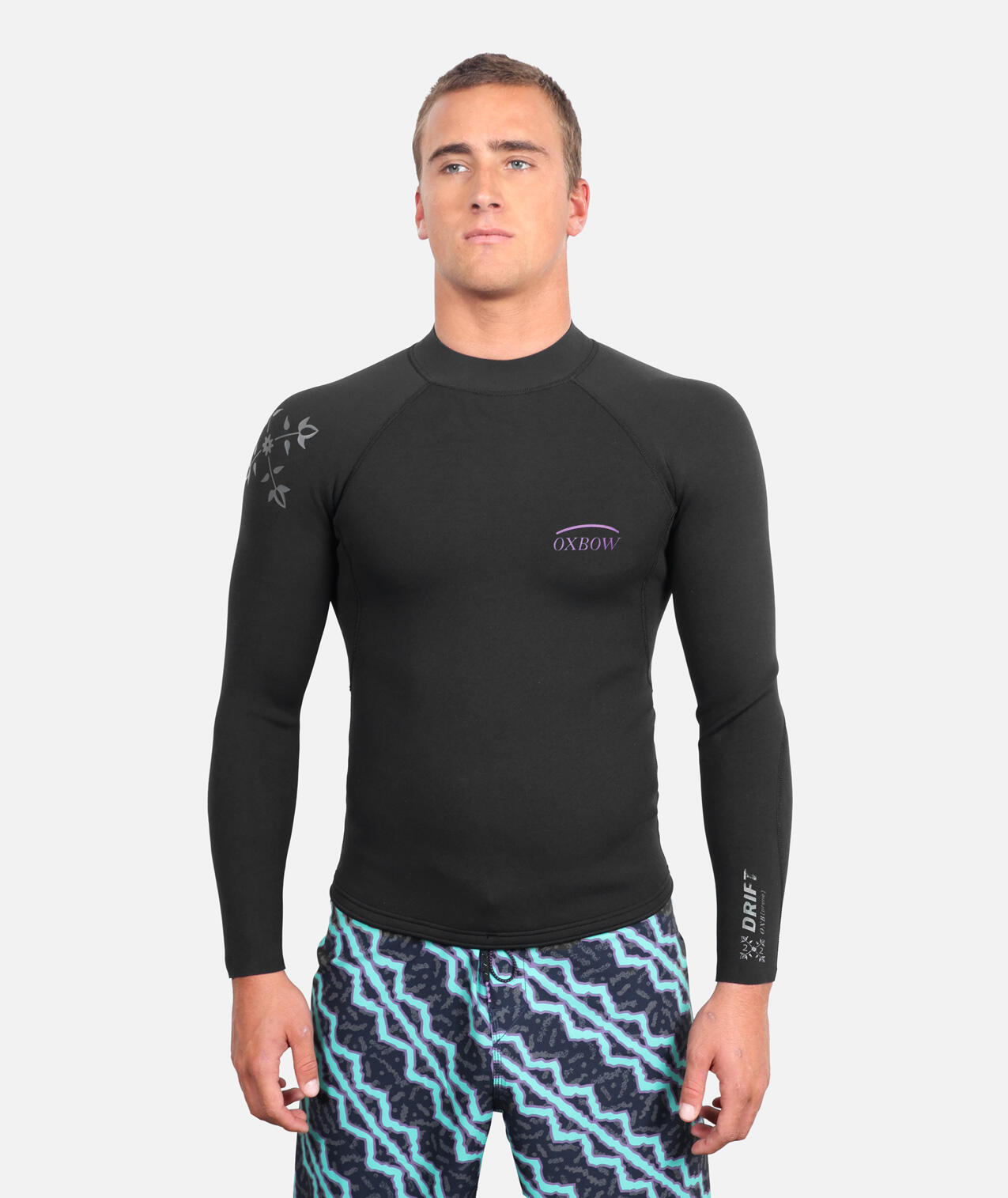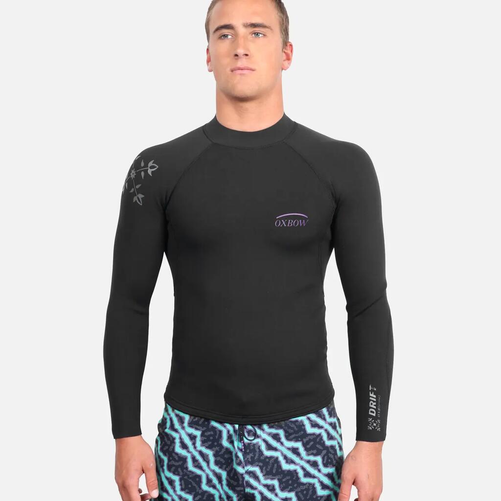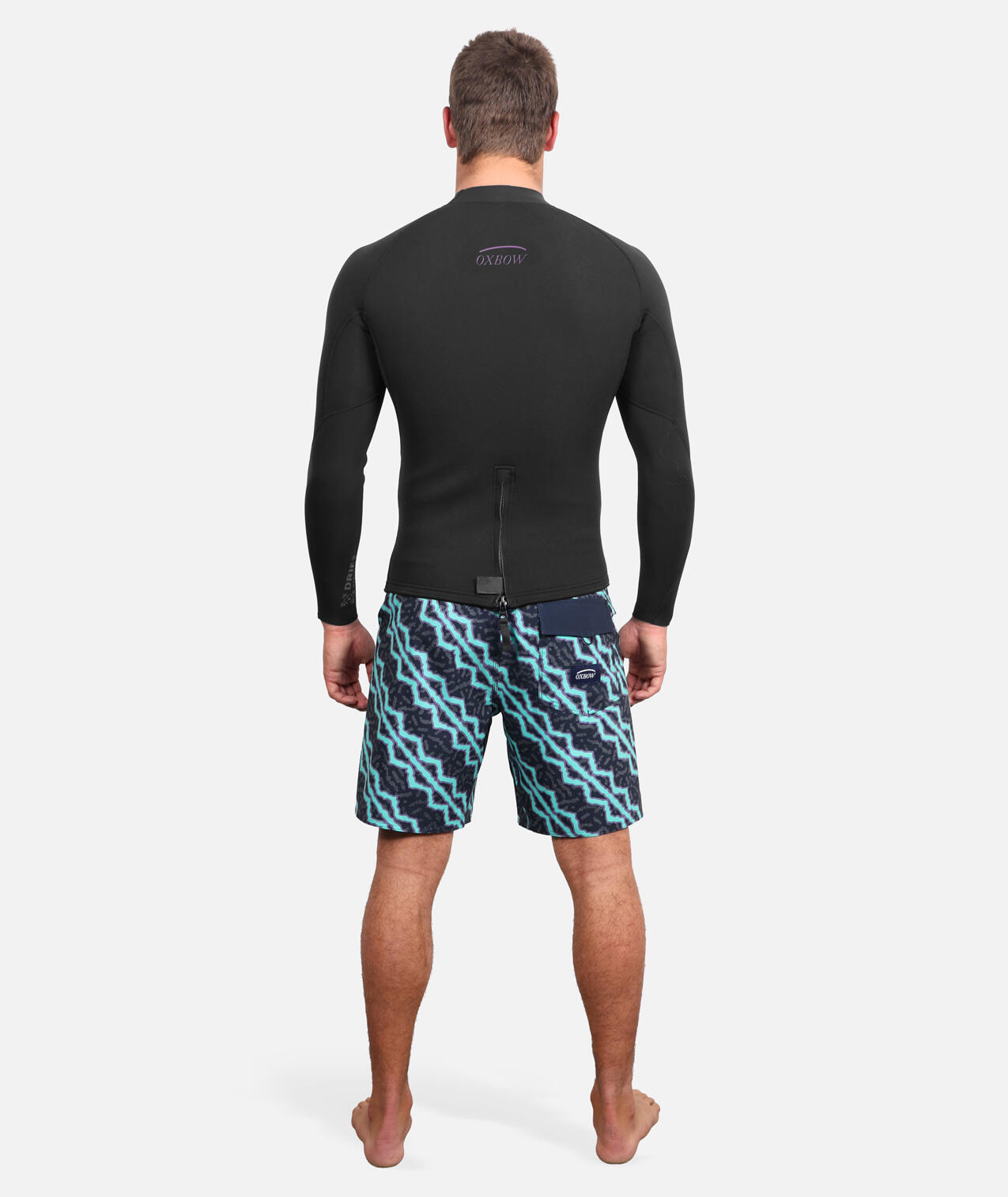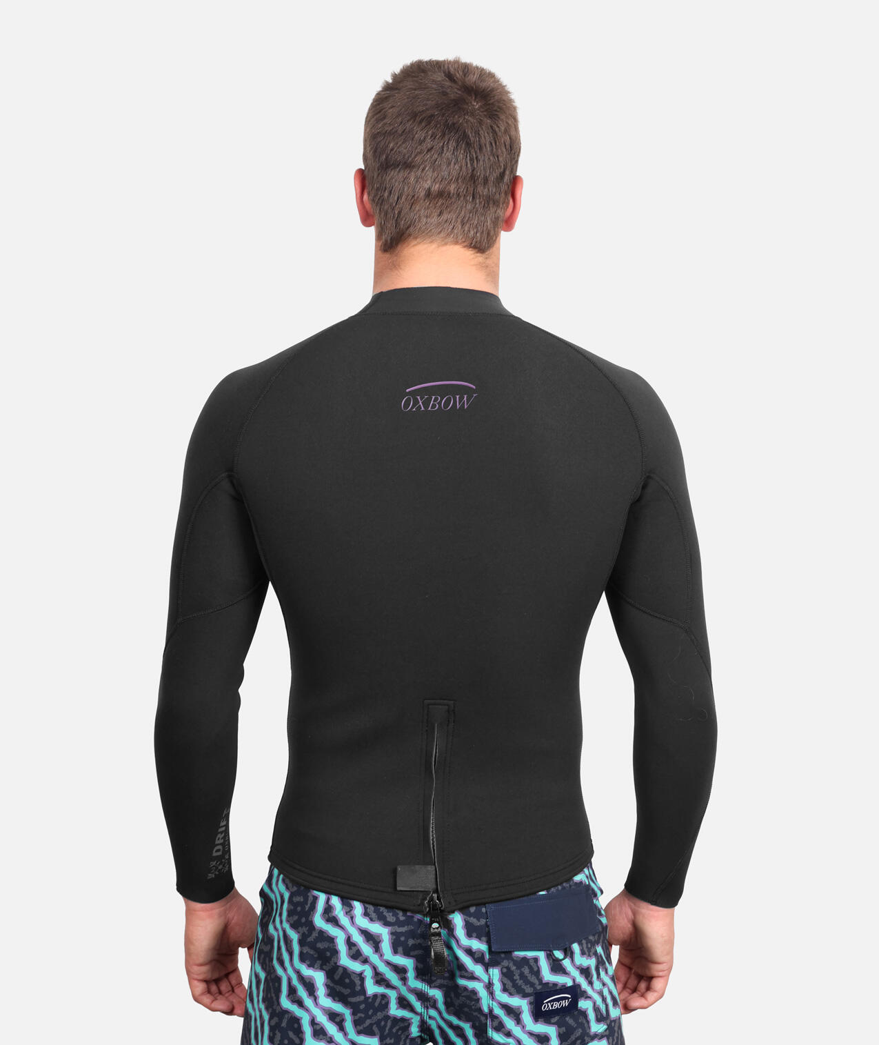 Long sleeve top 2mm with back zip, flat seams, OXB-prene rubber, recycled outer fabric and lining.