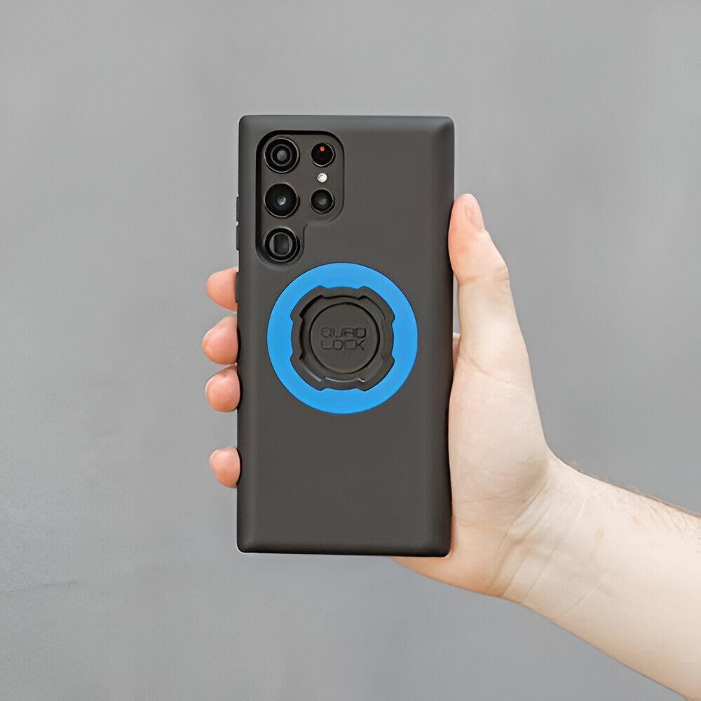 Quad Lock® Galaxy S22+ Case features our secure locking mechanism compatible with all Original twist and lock mounts, impact-resistant edge-to-edge cover, and protective lining.