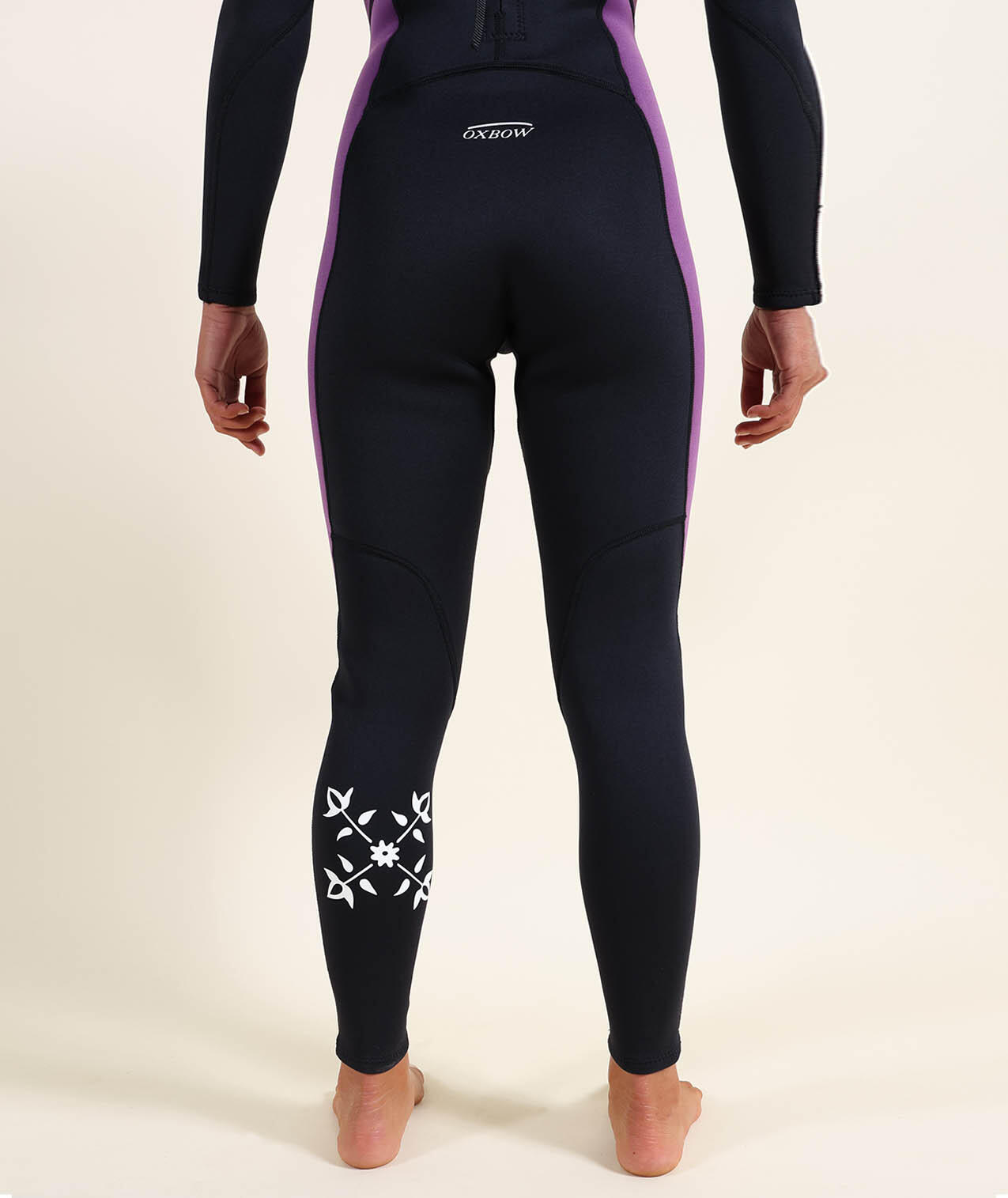 3/2 mm limestone neoprene wetsuit, flat seams, back zip, reinforced knees.