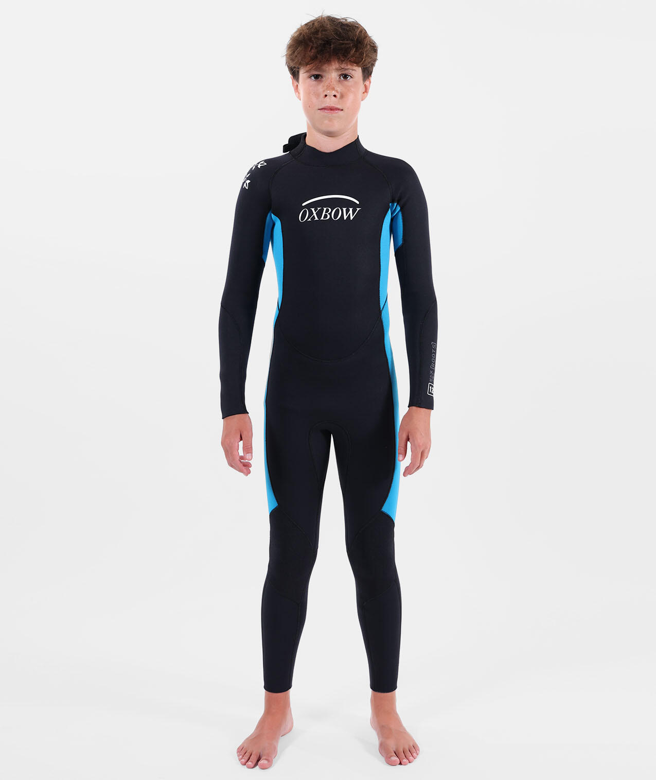 4/3 mm junior limestone neoprene wetsuit, GBS seams, back zip, reinforced knees.
