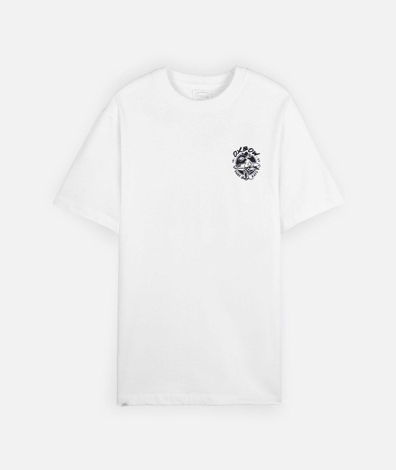 Crew neck t-shirt in and recycled cotton 160 g/m², printed on back with chest detail, woven label