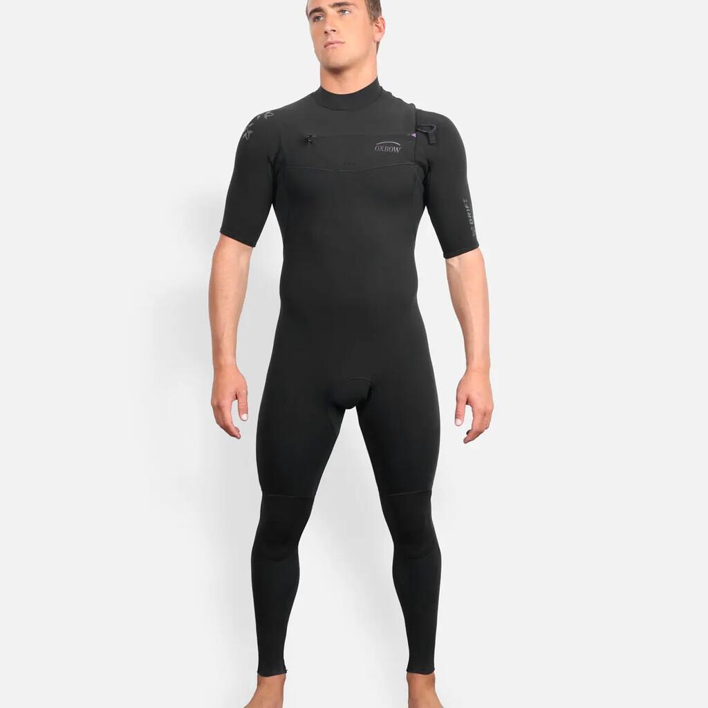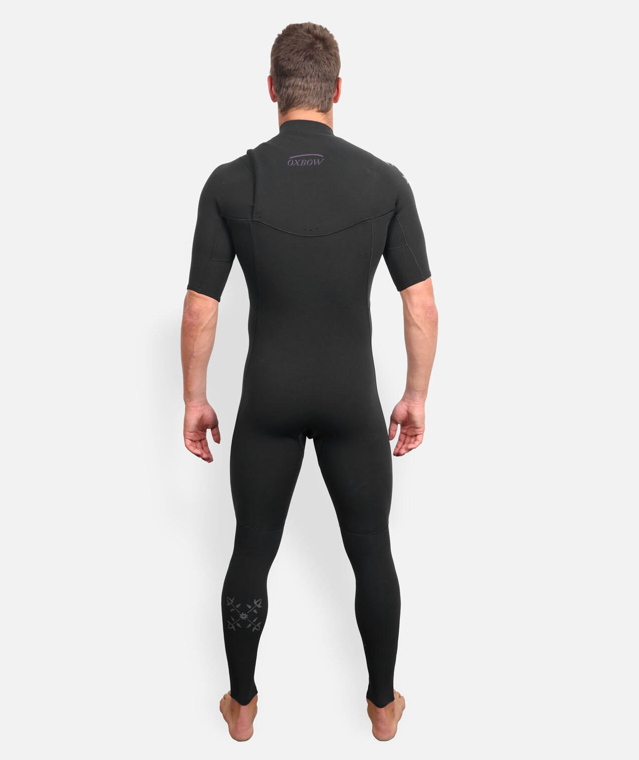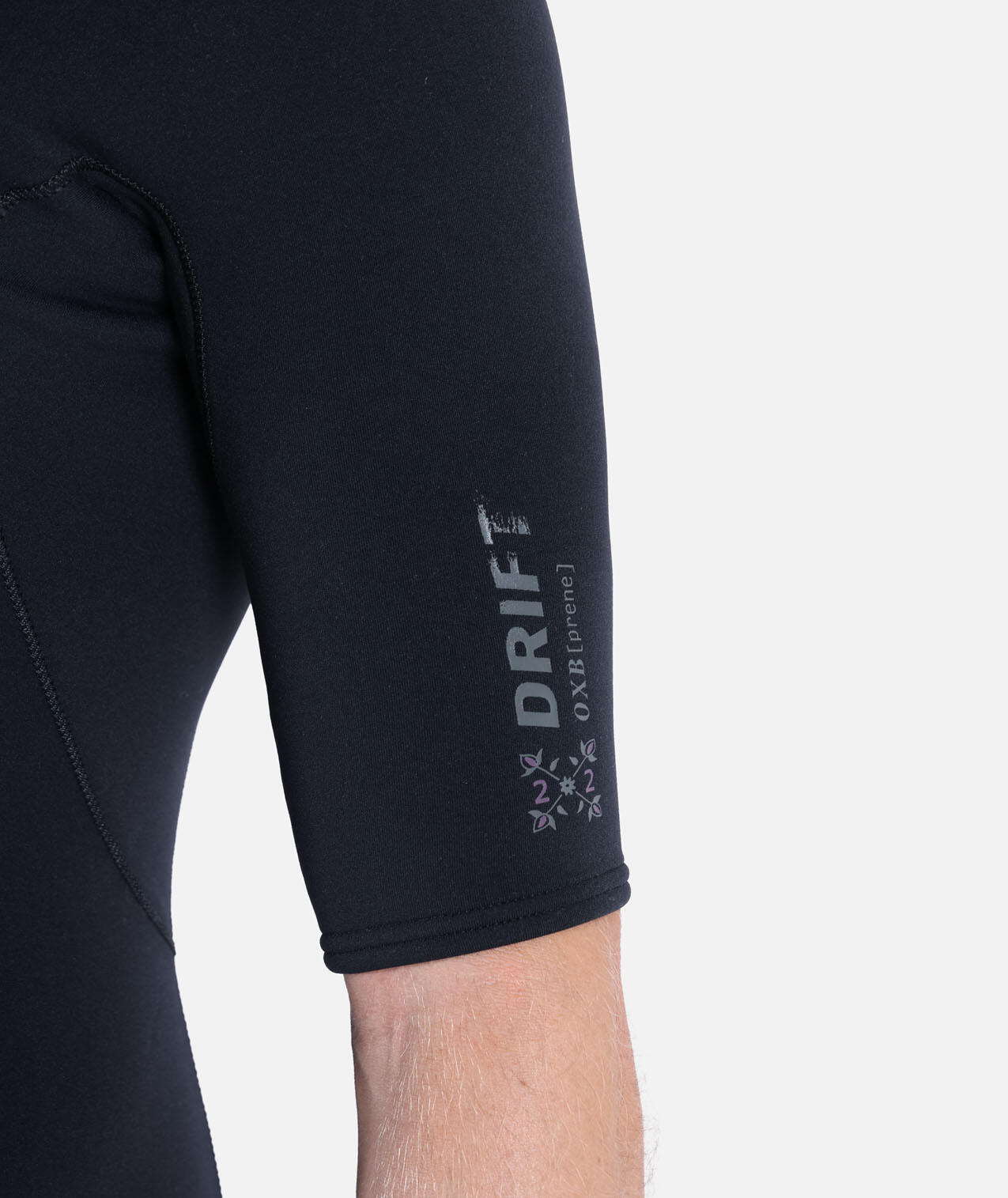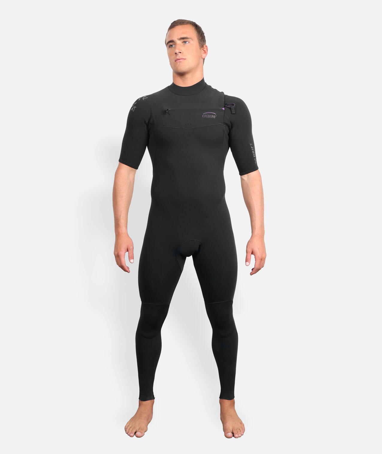 Short sleeve 2/2 wetsuit with chest zip, GBS, OXB-prene rubber, recycled outer fabric and lining.