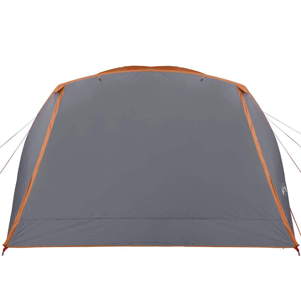 Orange camping tent for 4, waterproof and windproof with porch and 2 entrances. Lightweight and portable at 5.3 kg.