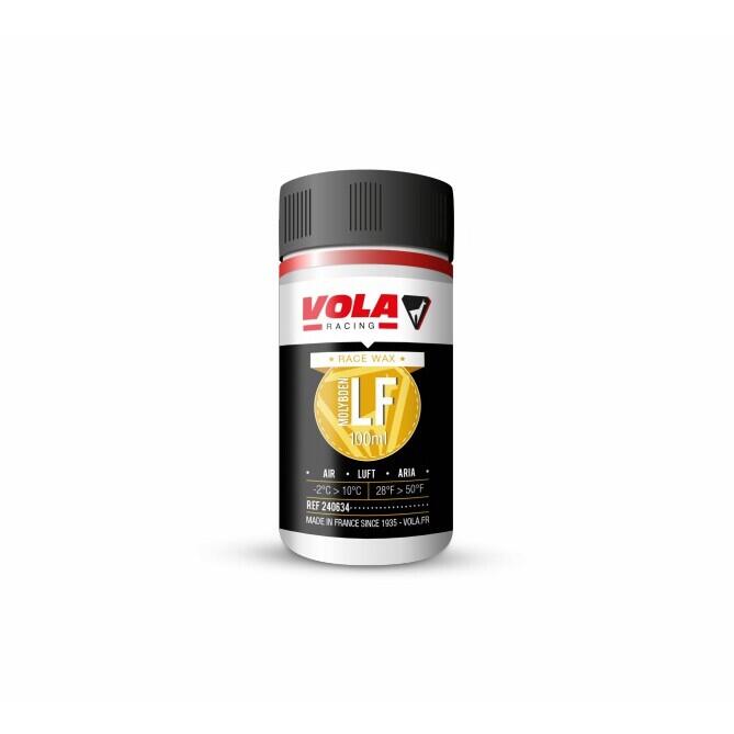 Fluorinated ski racing wax for wet, fine-grained snow and warm temperatures by Vola