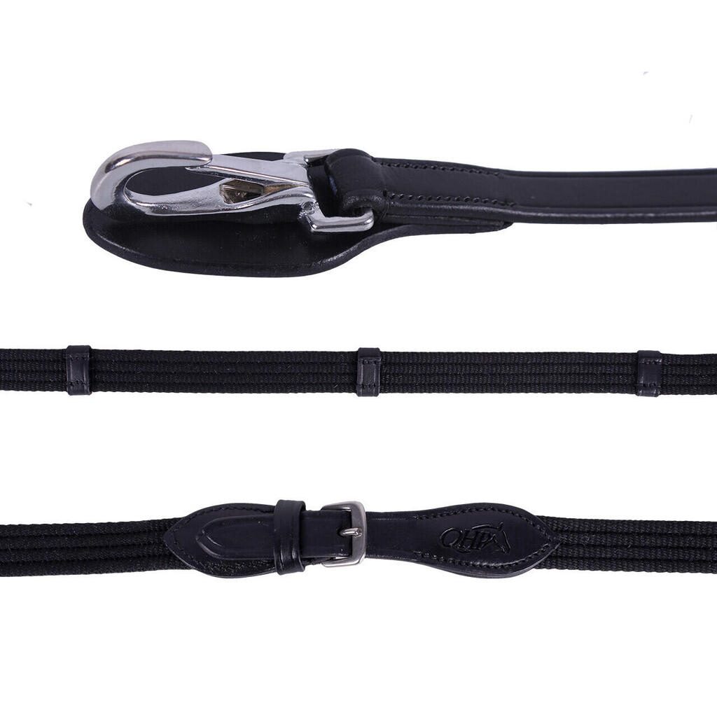 Discover horse reins with clip QHP Web: a practical accessory for easily attaching and removing reins from the bit.