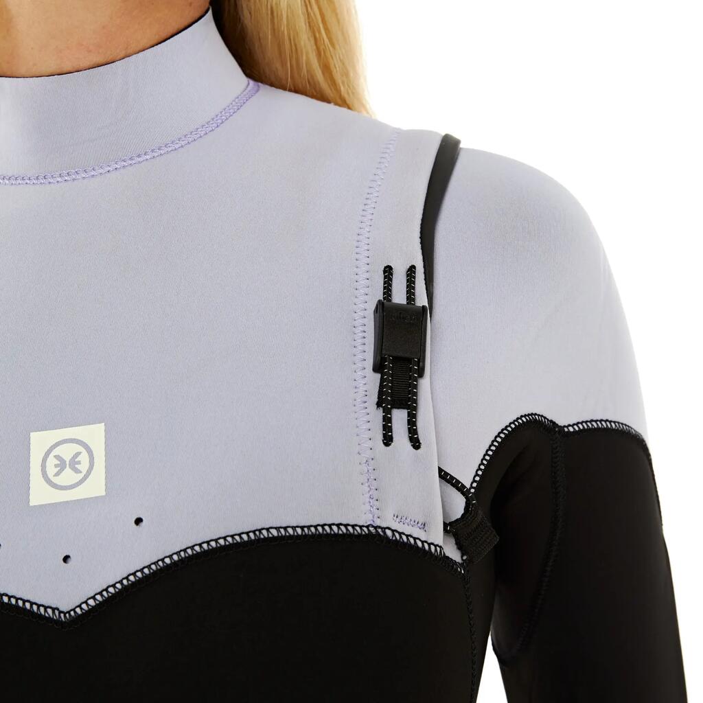 Wetsuit 4/3 Zipperless Limitless III by Deeply for women is designed to deliver unrestricted mobility and superior comfort in every session, featuring an improved design that removes movement restrictions. It offers high elasticity and durability, while the ultra-soft F-FLEX 3.0 lining enhances heat retention and quick drying. The inner Deeply FastDry panels, extending from the chest and back down to the knees, optimize thermal insulation throughout the body. The FastDry panels are glued and stitched, and the seams are blind-stitched (GBS) and internally sealed with elastic Neo Tape 2.0 tapes to reinforce durability and flexibility. The Zip Free zipperless entry system provides a comfortable fit, complemented by a chest panel adjustment with Nifco stopper and double elastic to help prevent water entry. Improvements across the shoulders, knees, chest, and back ensure total freedom of movement, while the ENERGY TECH Panel running from the underarms to the knees adds exceptional flexibility. The Glide Skin–lined neck and seamless neck opening enhance sealing and comfort, while rubber grip bars on the left shoulder and rubber rings on the cuffs help minimize water ingress. This wetsuit also features high-density ergonomic knee pads, internally reinforced stress points, and a practical key loop on the chest panel. With a 4/3 mm thickness, it is ideal for water temperatures between 10 and 14ºC.