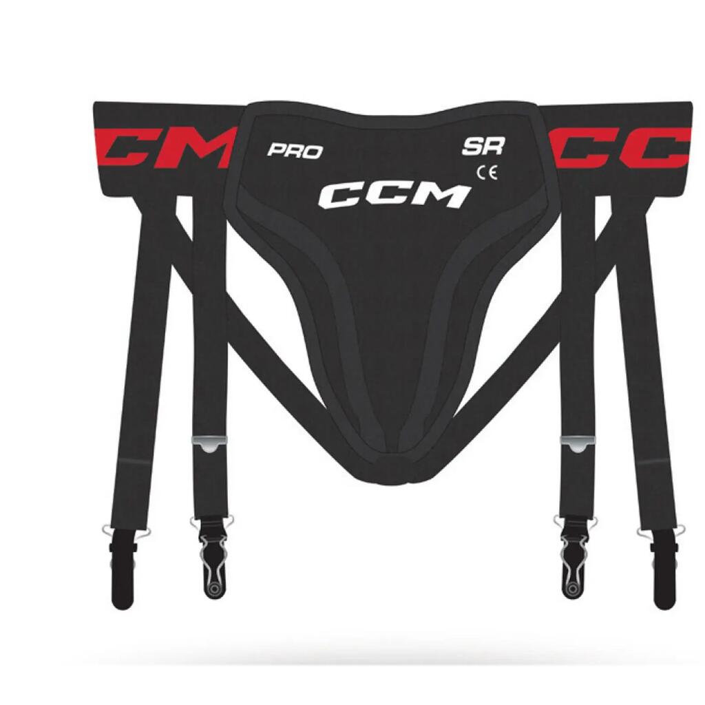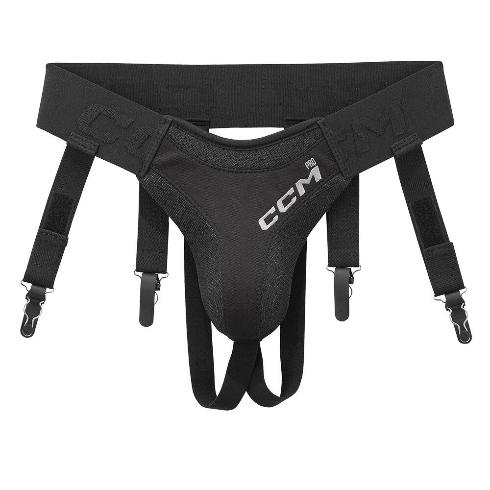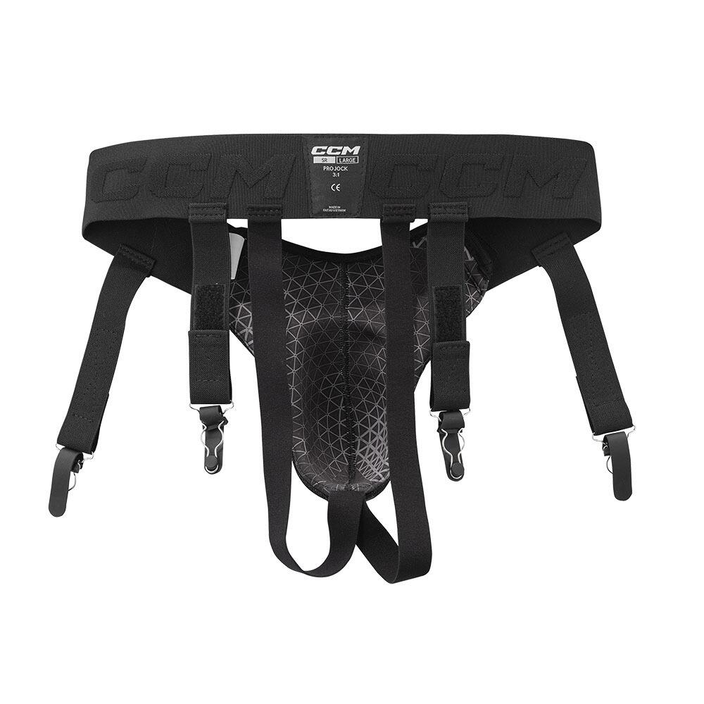 Protective cup with a hard outer shell and soft lining for maximum, comfortable protection of the groin area.
