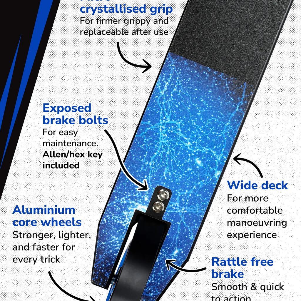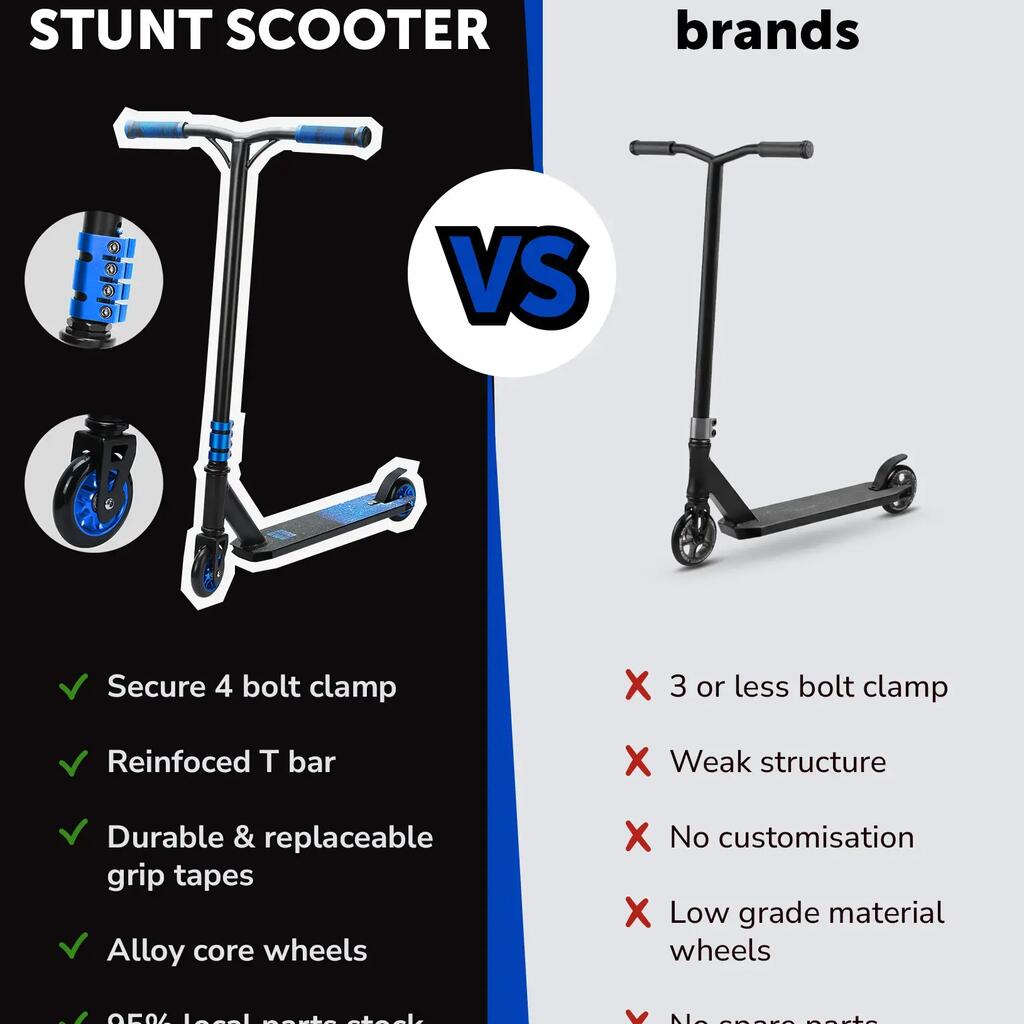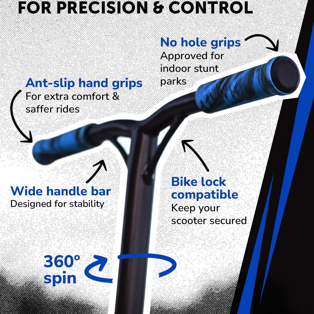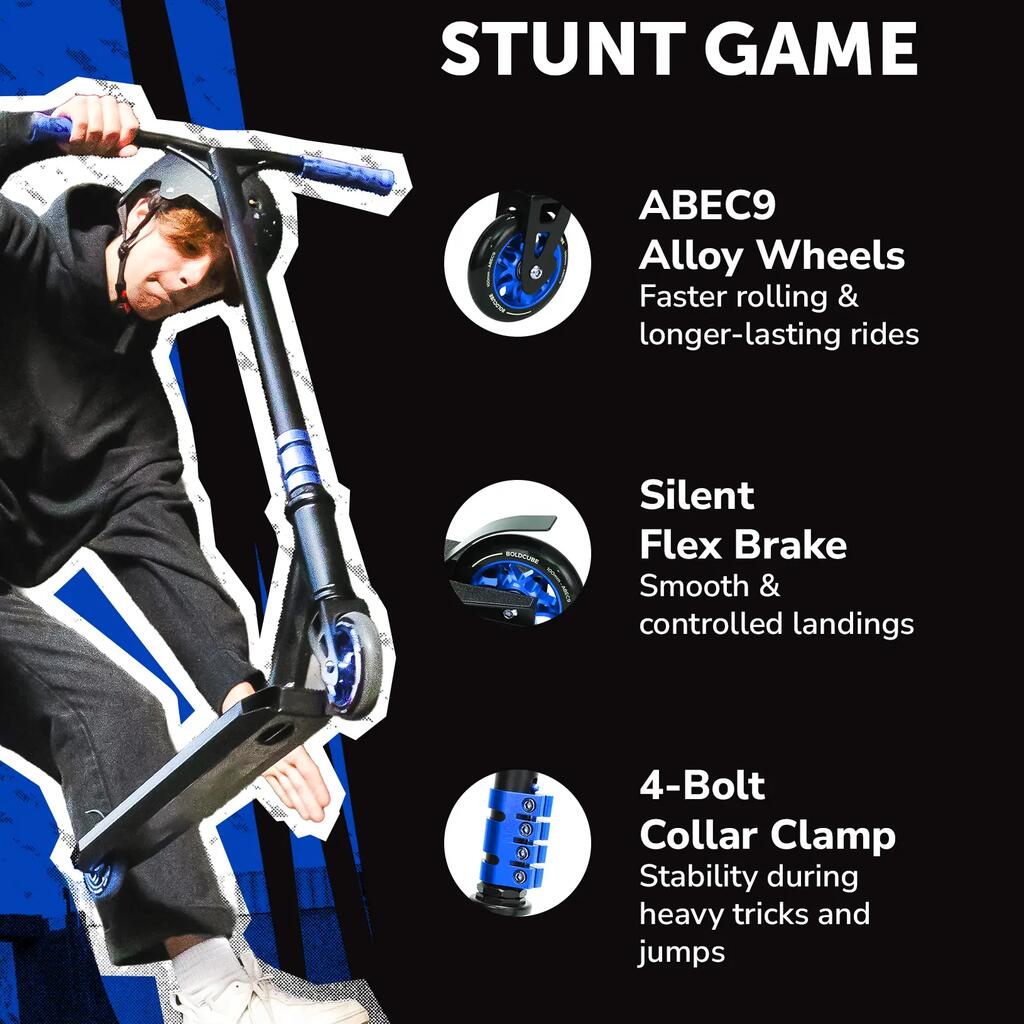 ABEC9 ALLOY WHEELS - For the smoothest wheel spin, the Deluxe 2 Wheeled Stunt Scooter is equipped with ABEC-9 Bearings, the highest precision you can get for the fastest smoothest spin making it the perfect stunt scooter for teenagers and children.