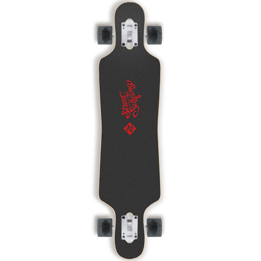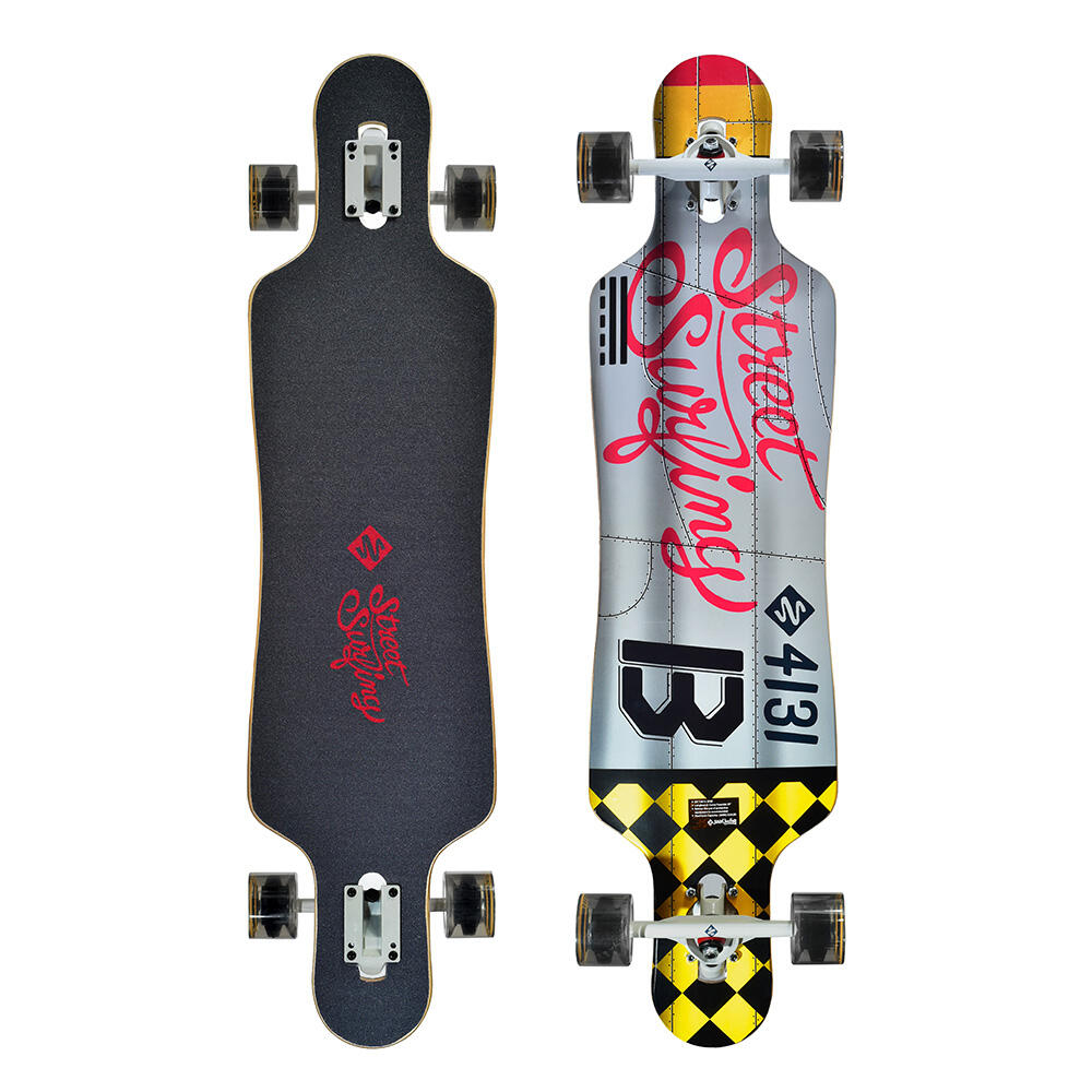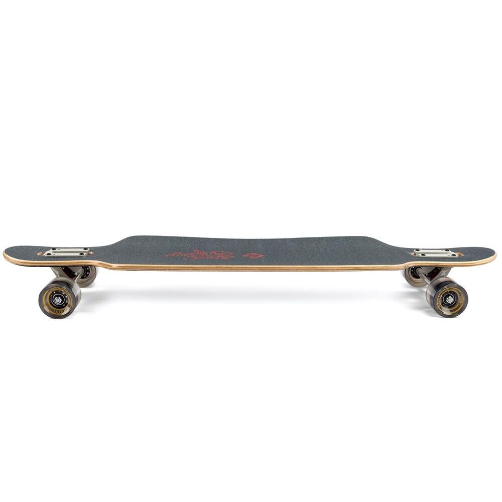 This symmetrical twin-tip drop-though board was designed to be used on the hills and the streets.