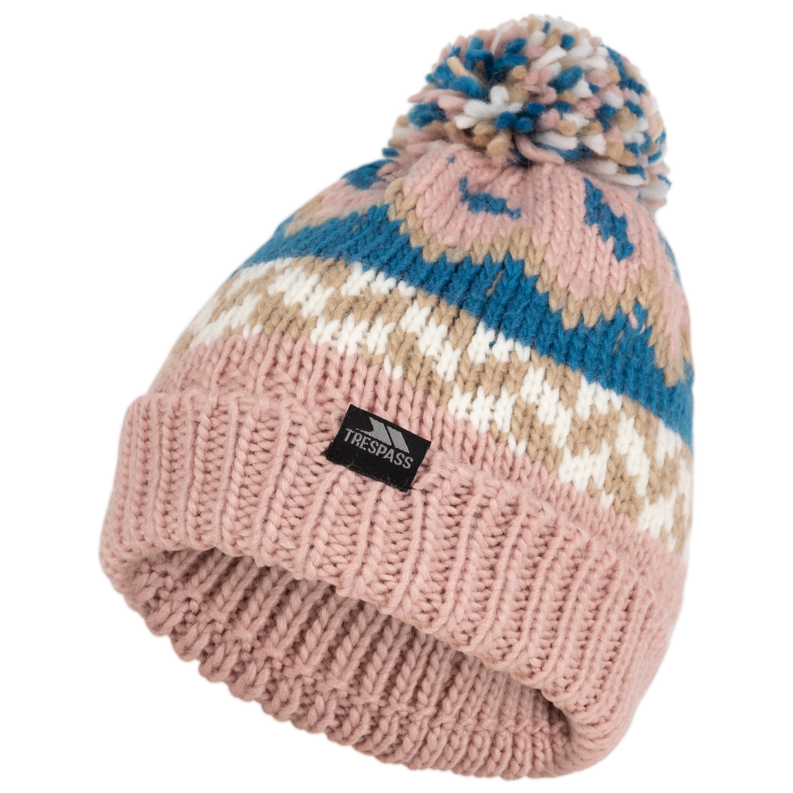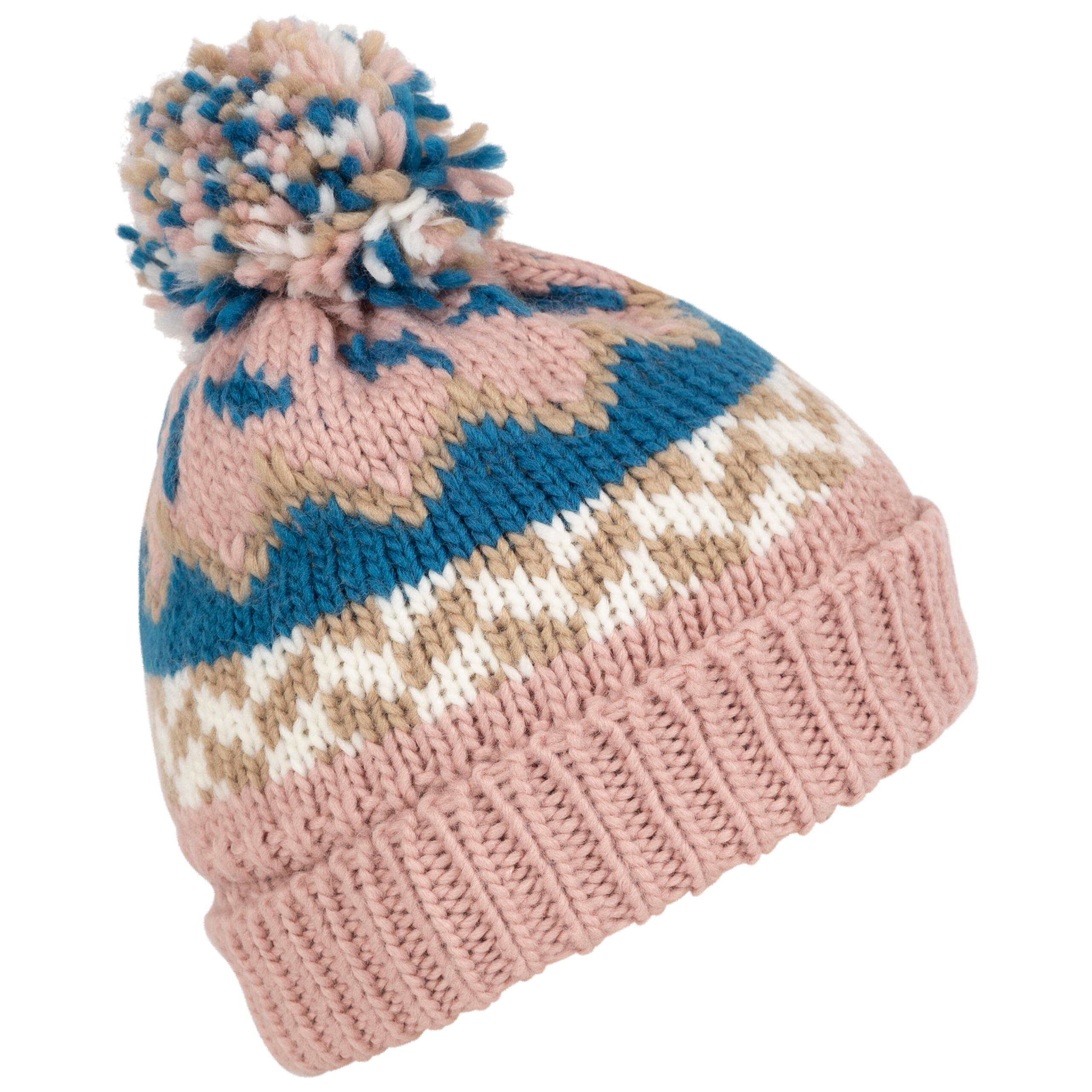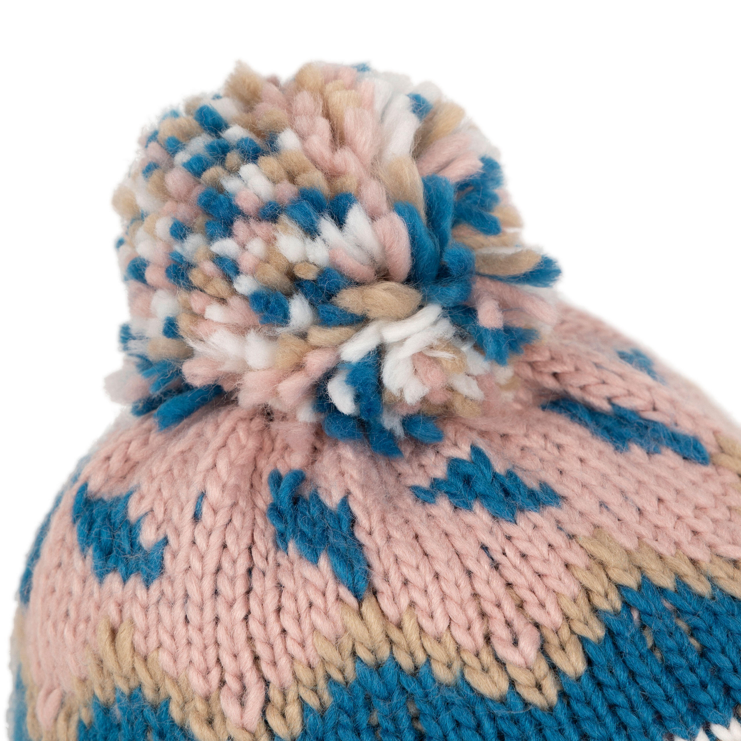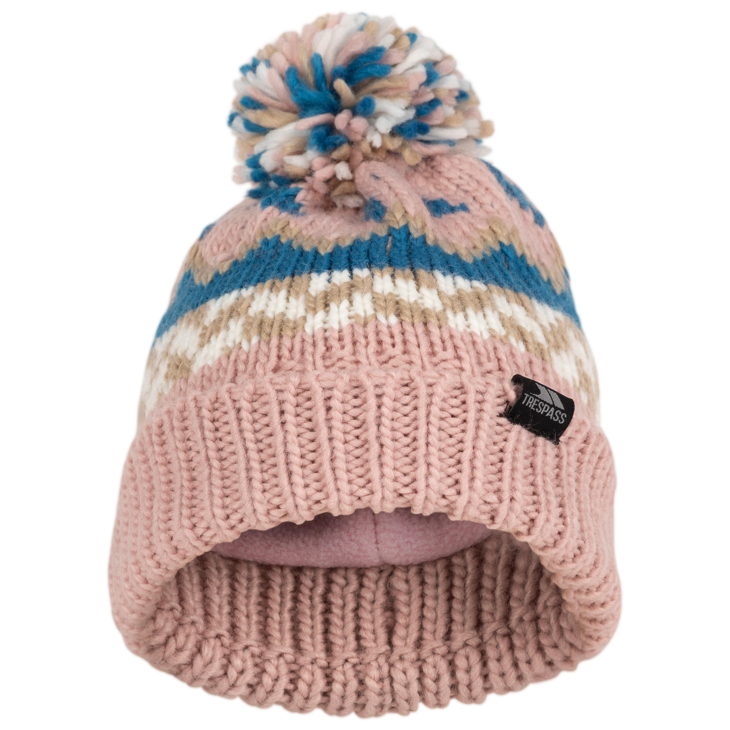 Keep little heads warm and cheerful in this unisex patterned knitted hat with pom pom, full fleece lining and turned‑up hem for extra cosy protection.