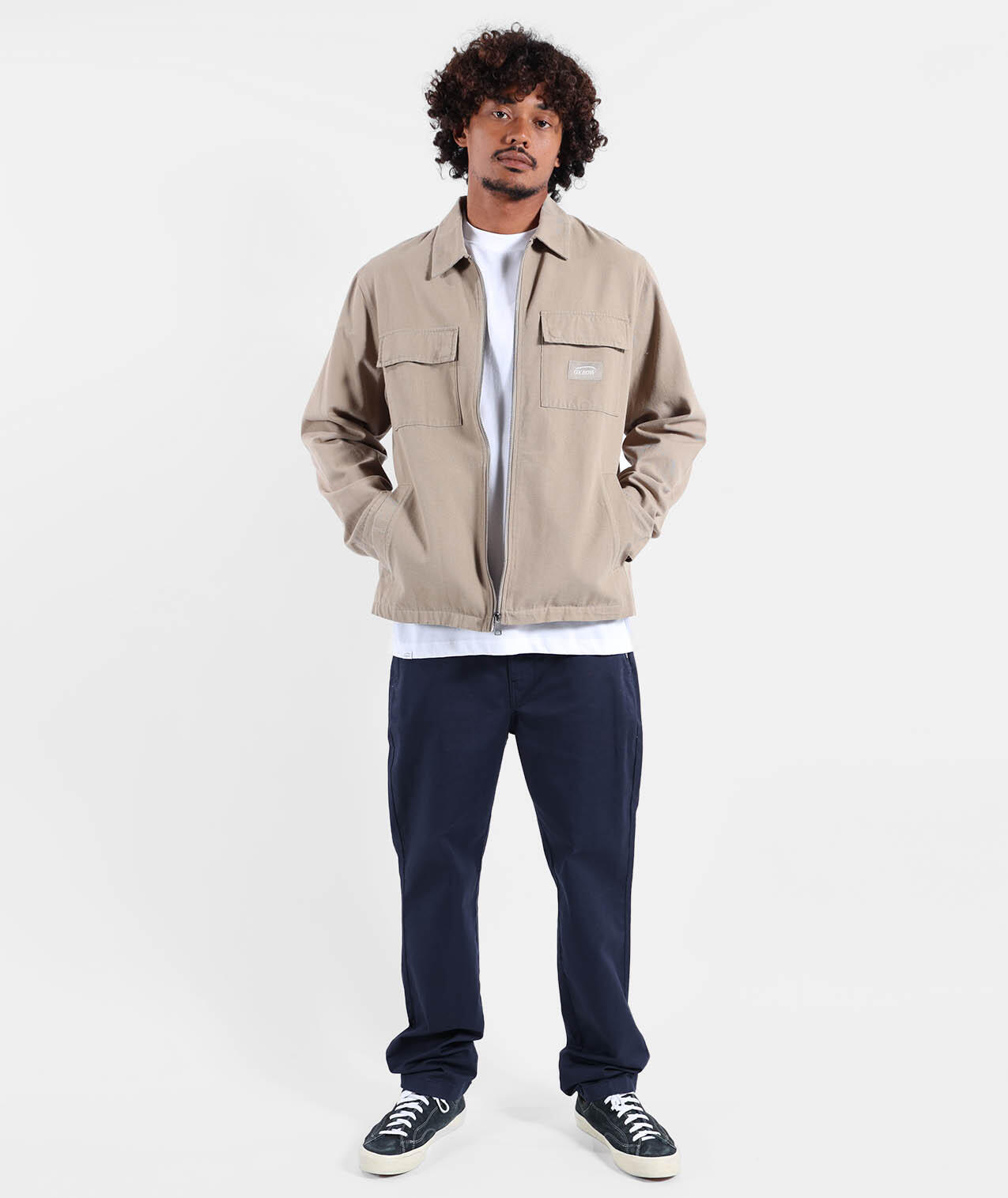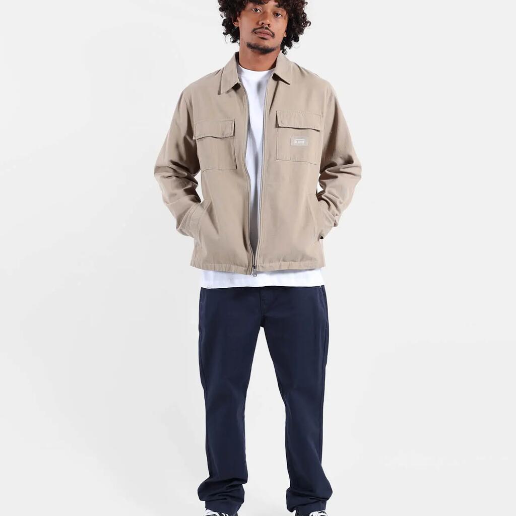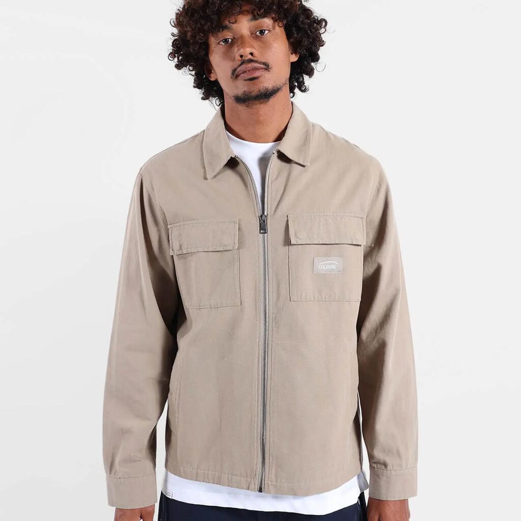 Zipped jacket in thick cotton canvas with chest patch pockets and hand pockets, washed finish.