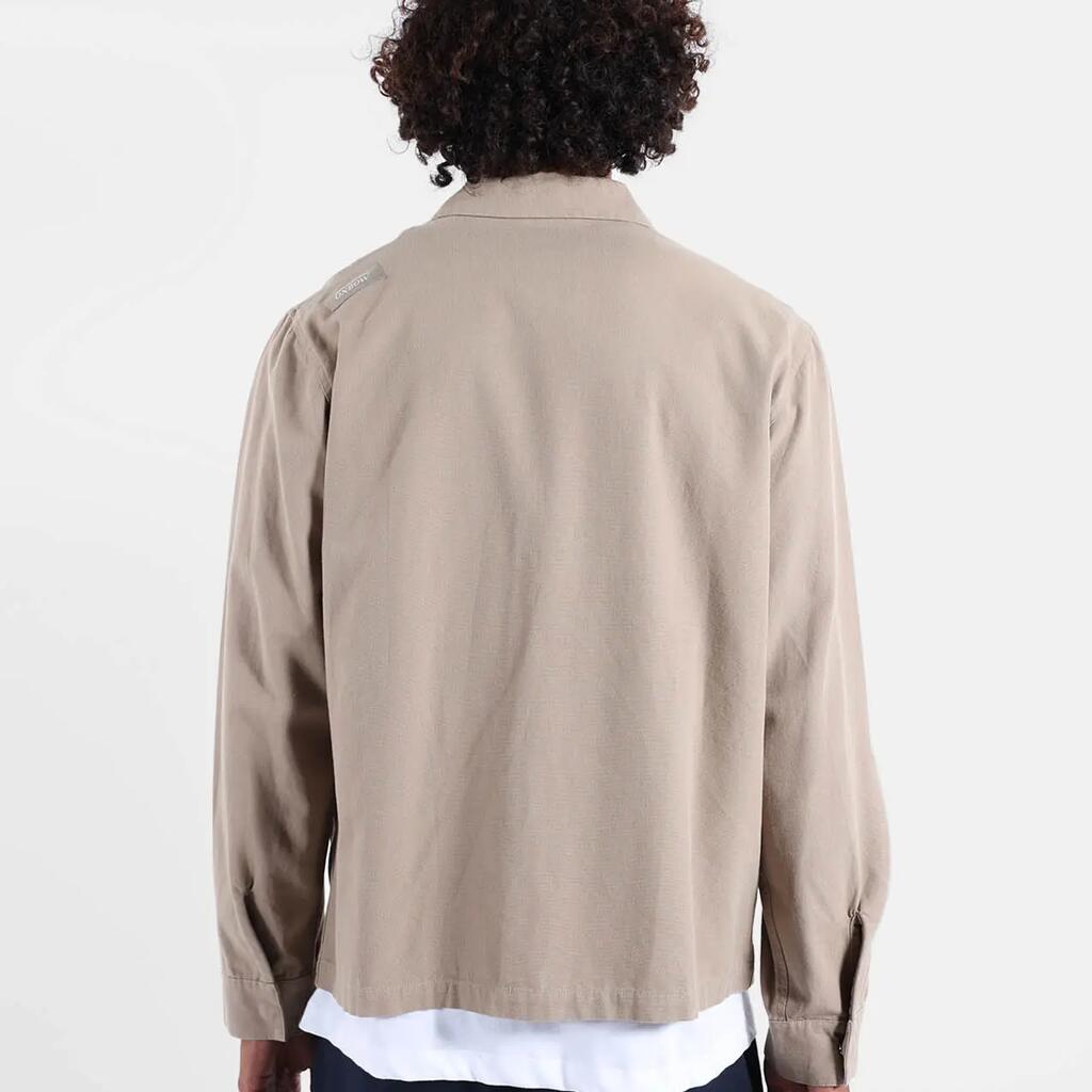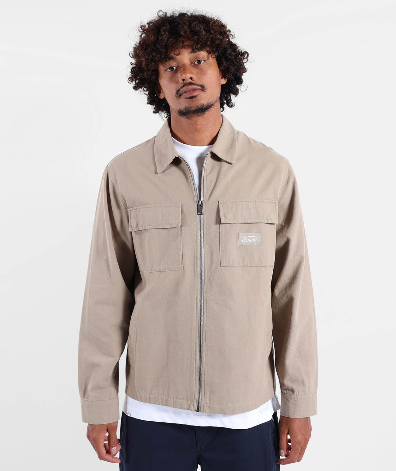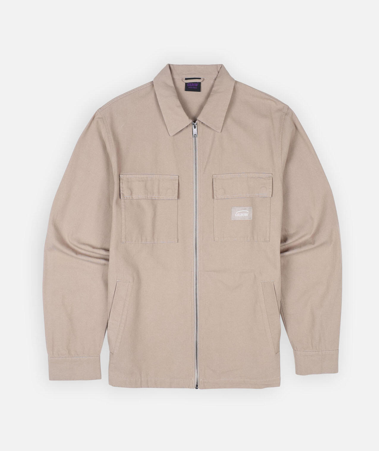 Zipped jacket in thick cotton canvas with chest patch pockets and hand pockets, washed finish.