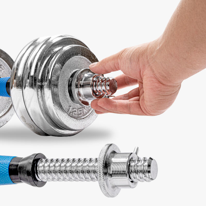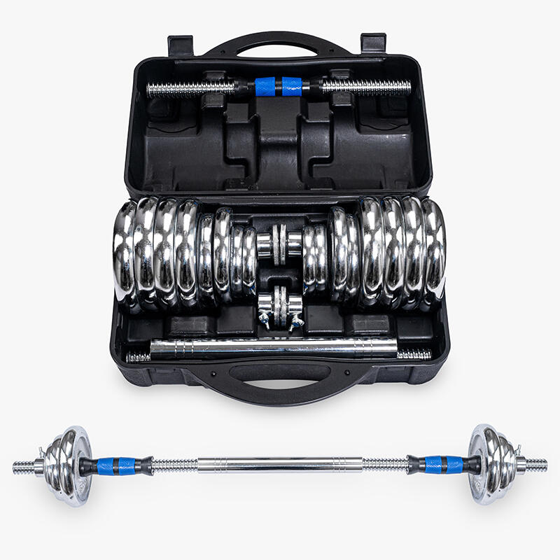 • Barbell set consisting of 2 x 15 kg dumbbells with adjustable weights