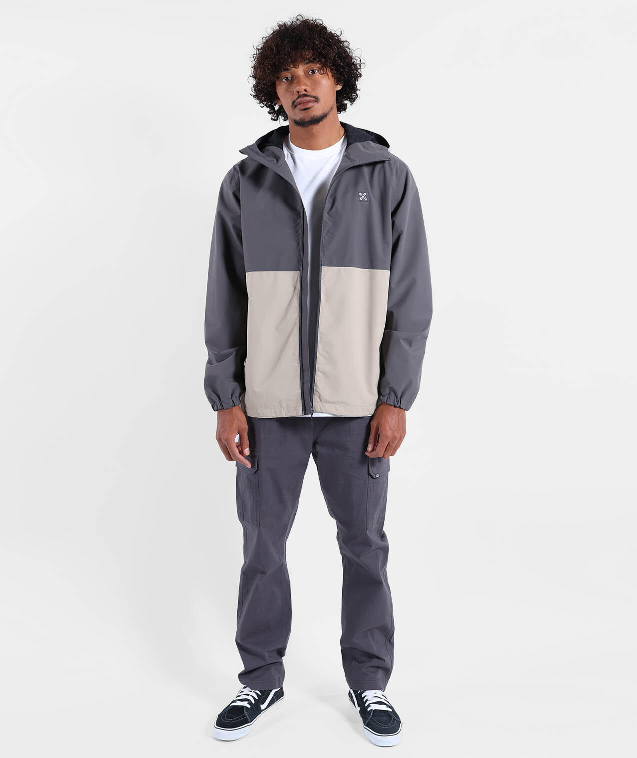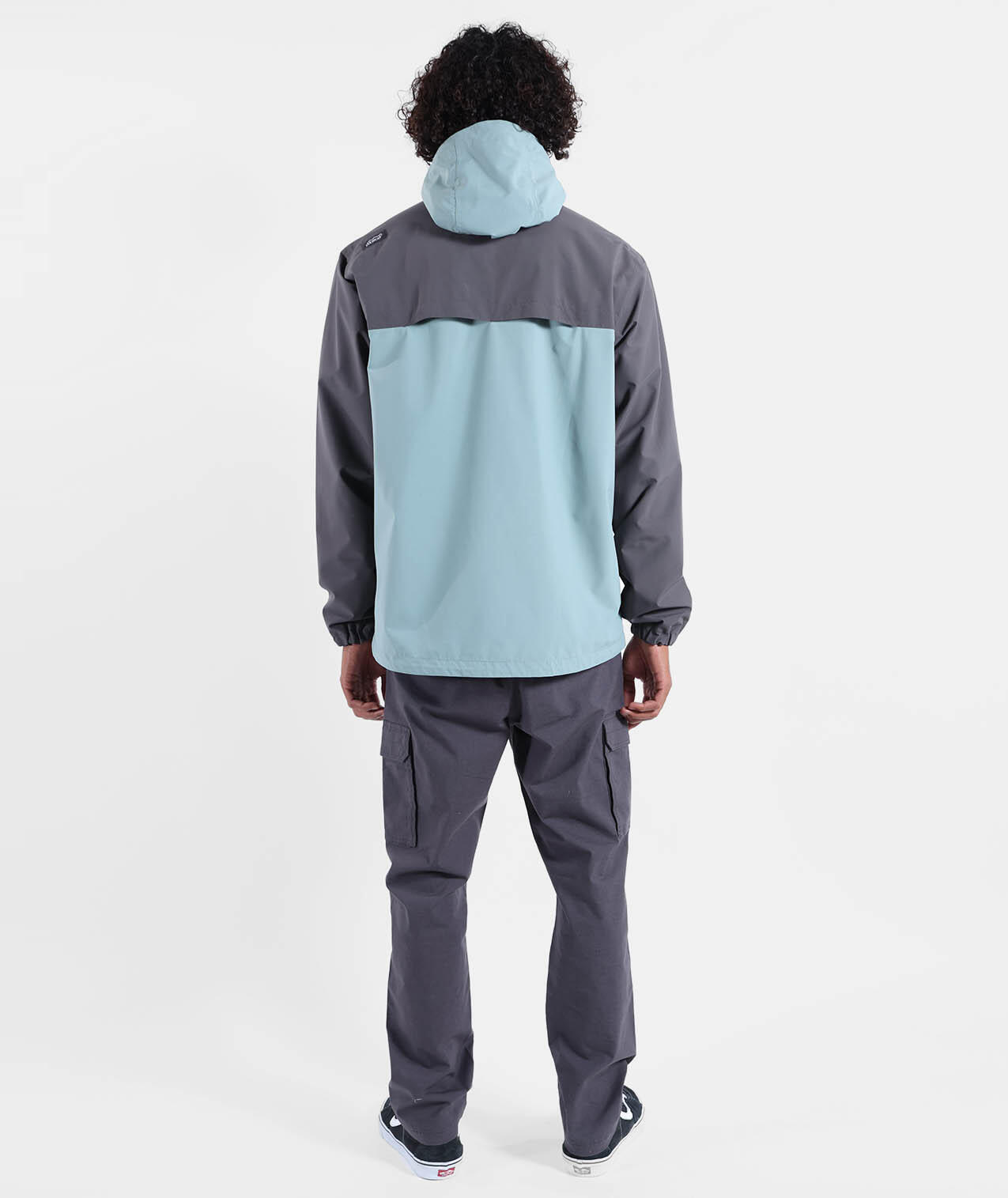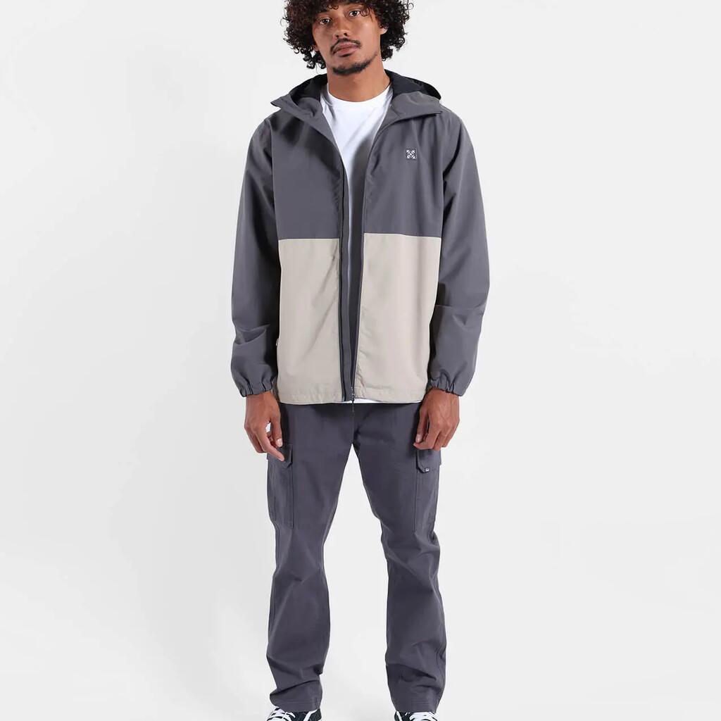 Waterproof and breathable jacket with adjustable hood, elastic hem and cuffs, sealed seams, zip pockets and printed inner lining, colorblock.