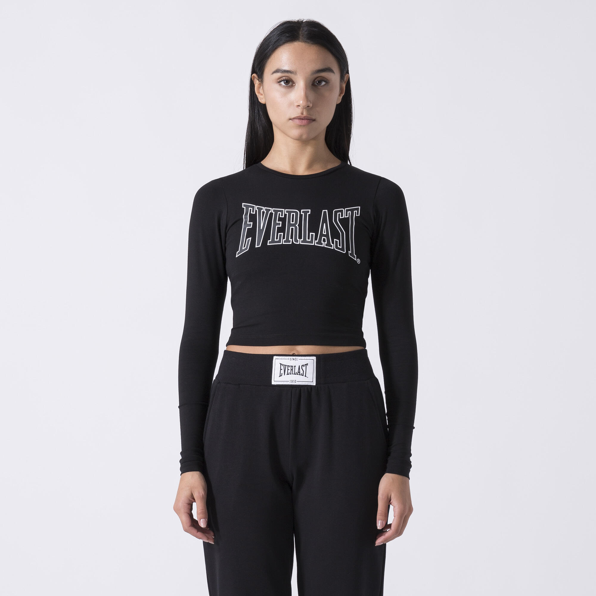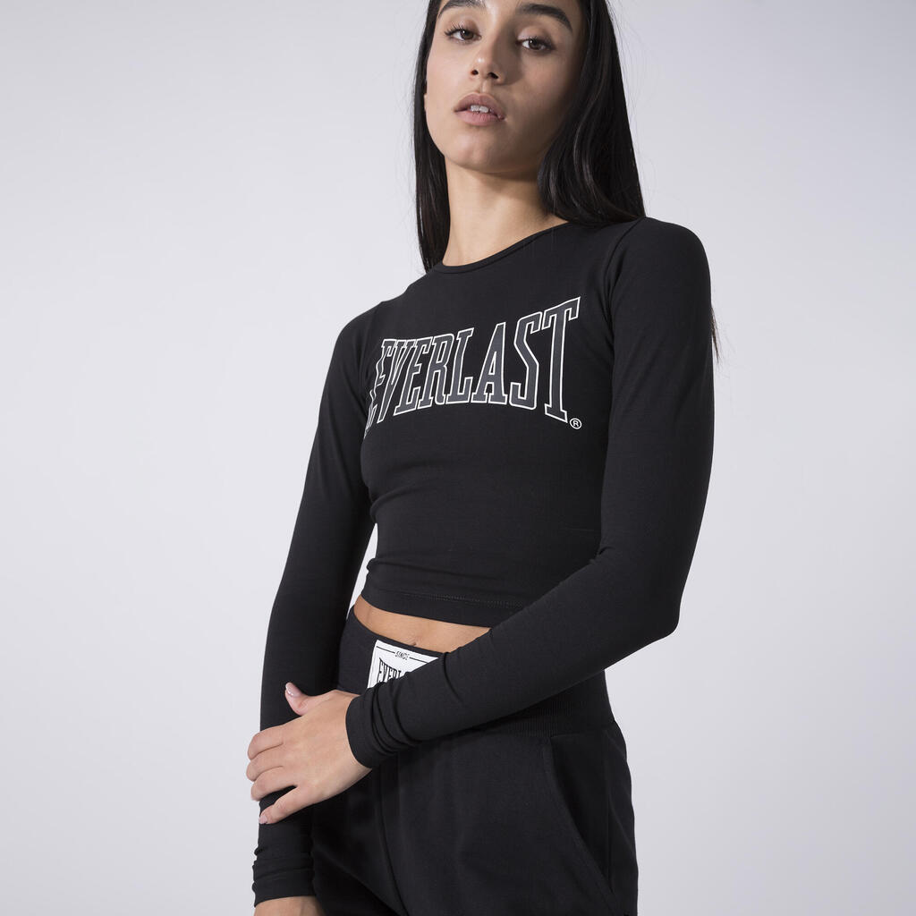 ICONIC LONG SLEEVE CROPPED TOP BLACK COTTON, ELASTANE