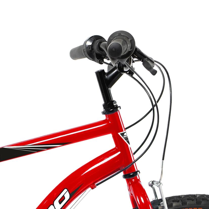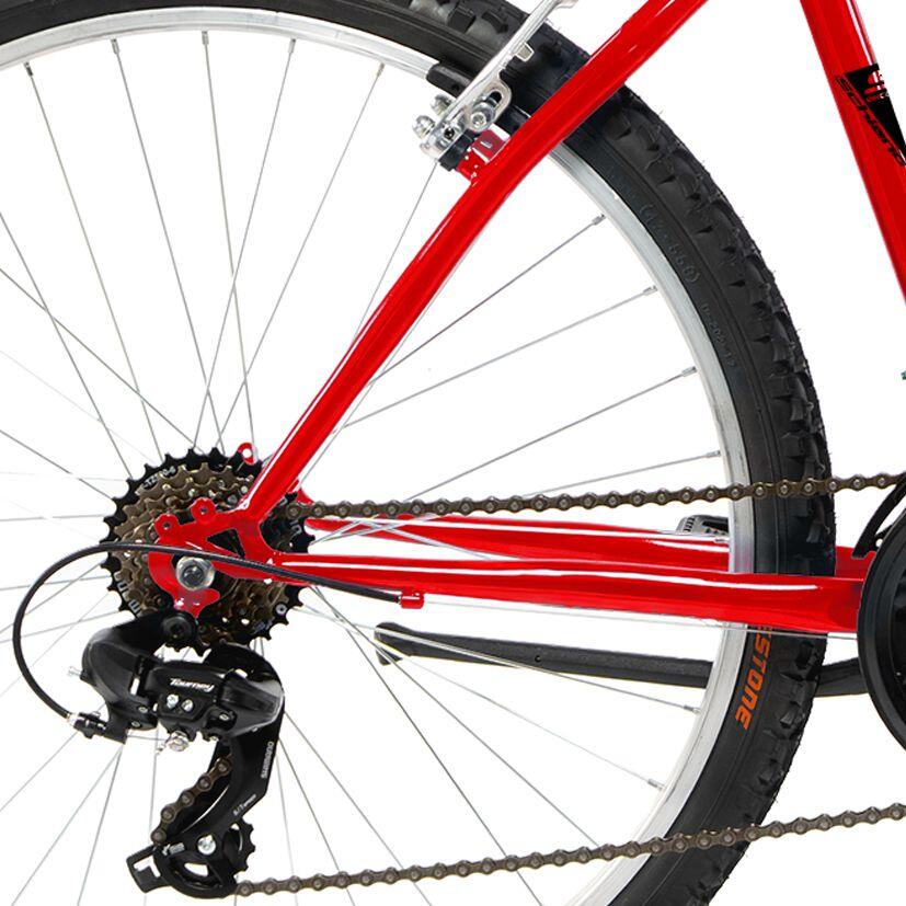Steel mountain bike with V-brakes, Shimano TY 18-speed gears and aluminum rims