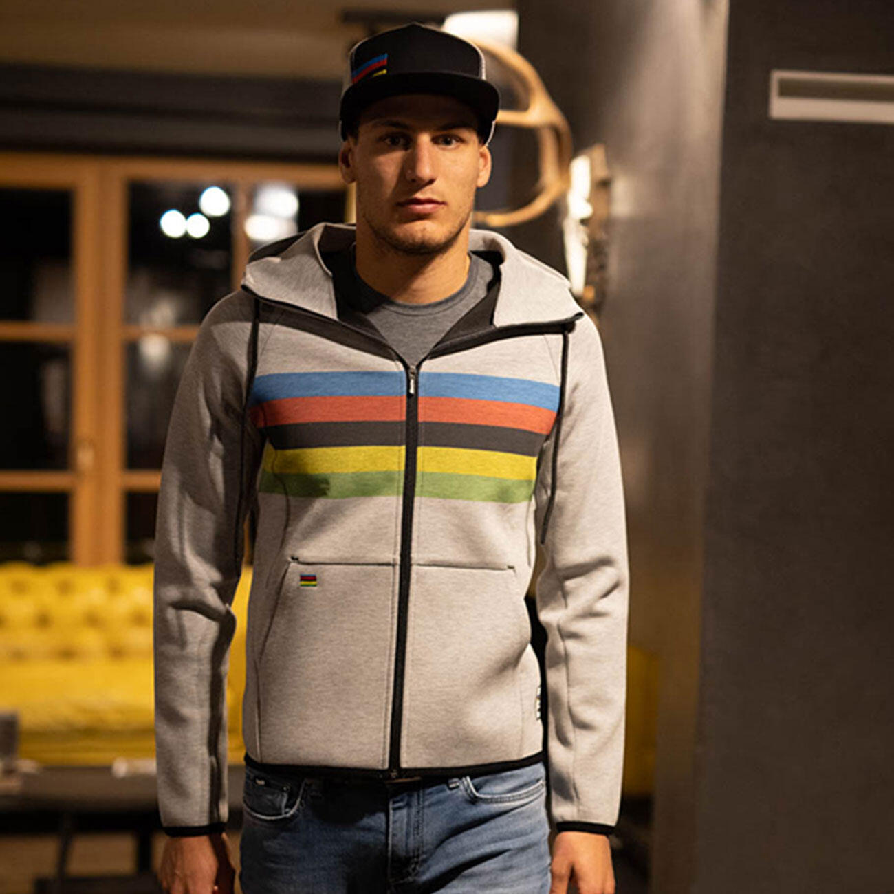 Discover the Santini Iride Hooded Jacket, the perfect blend of style and functionality for road cycling enthusiasts.
