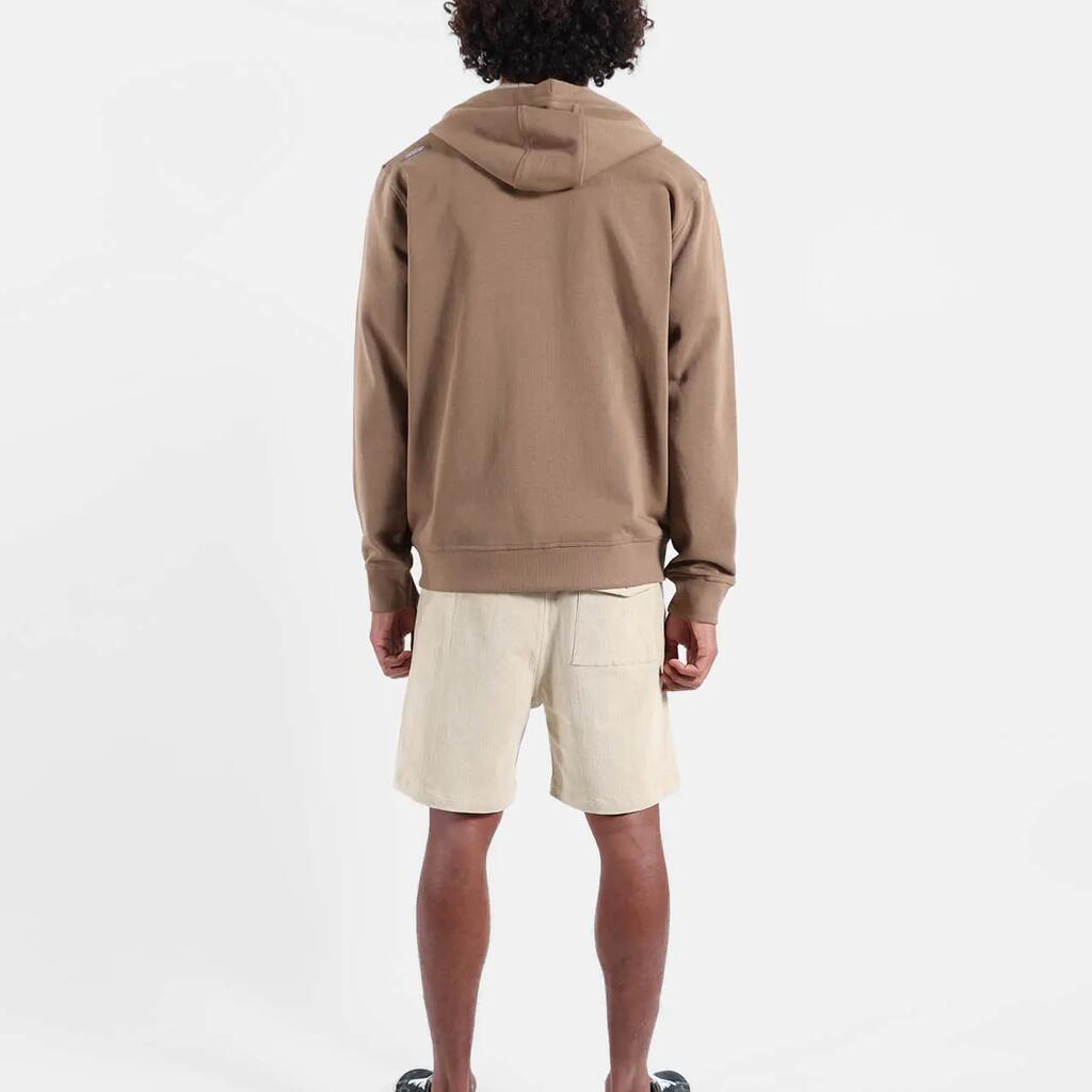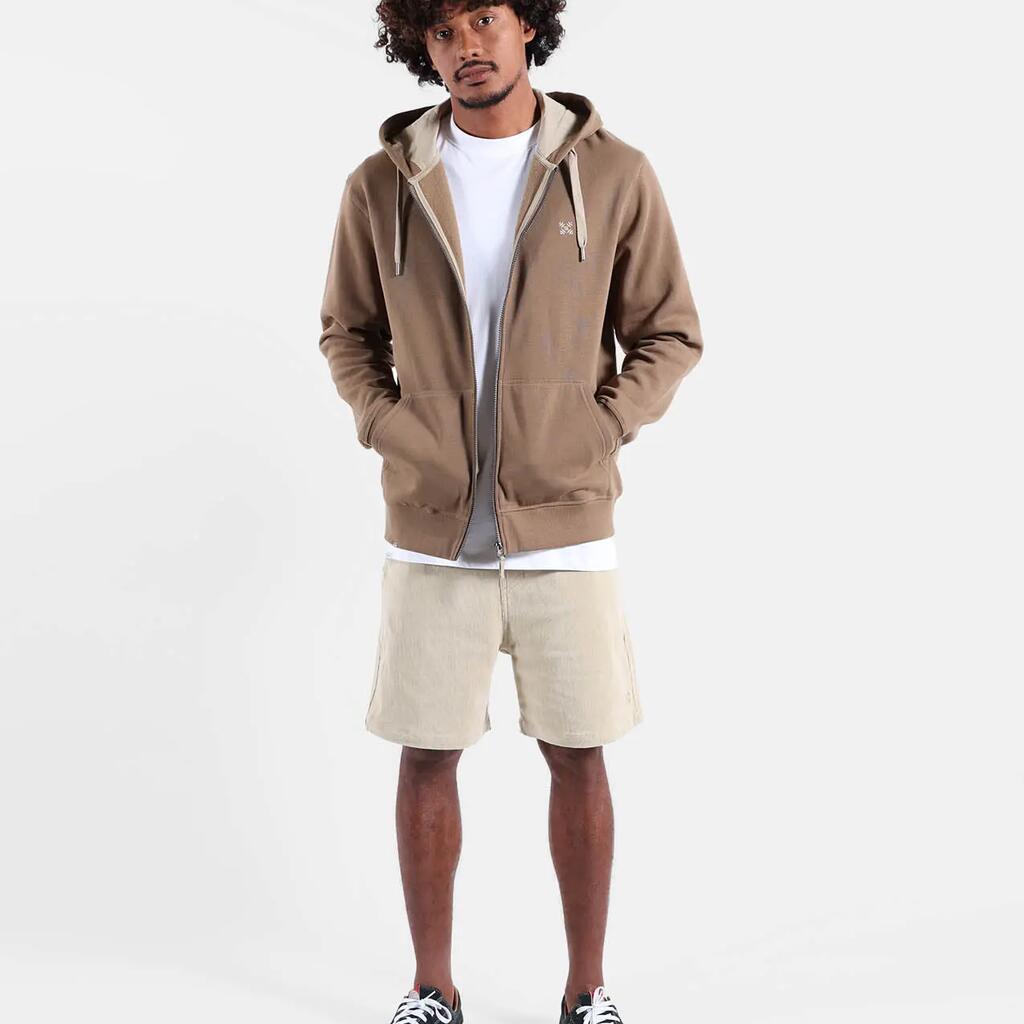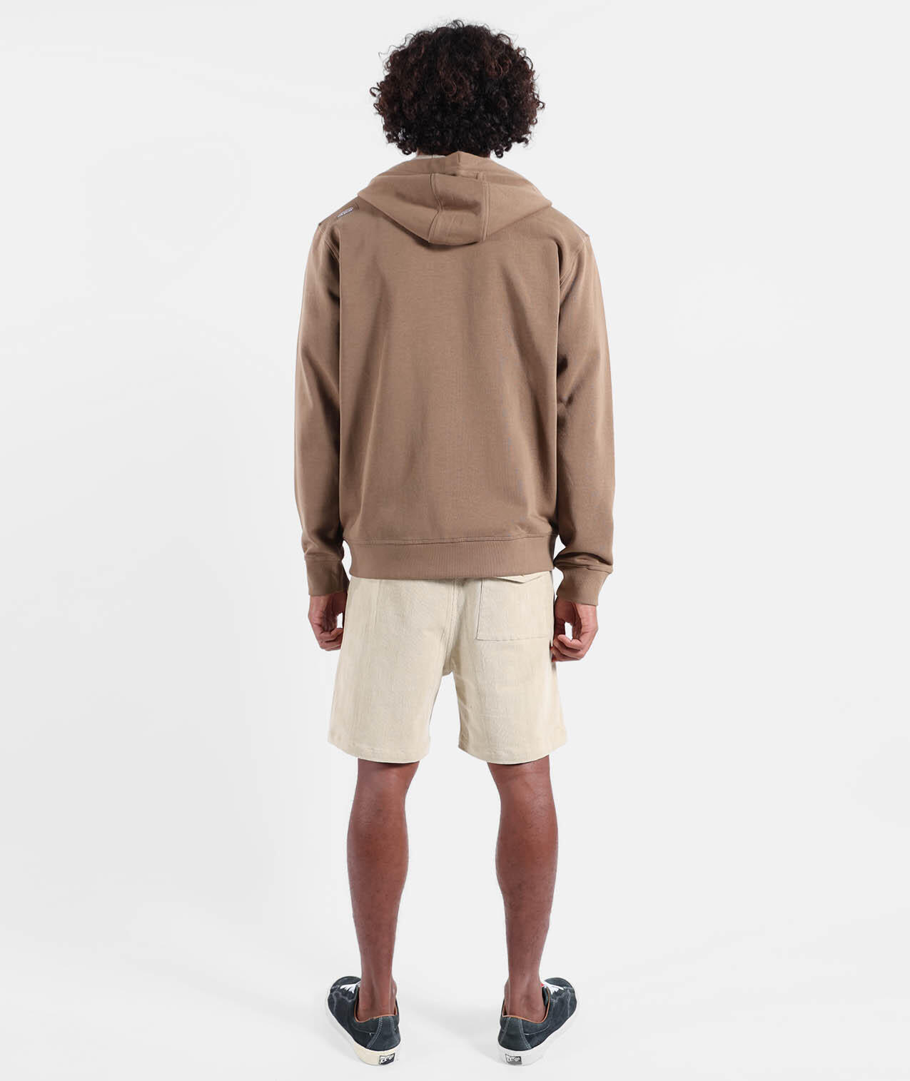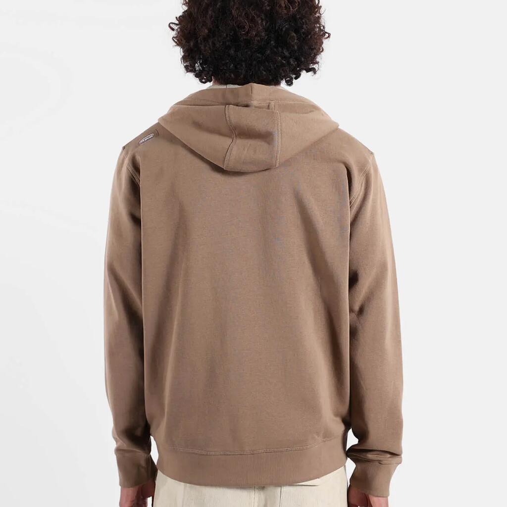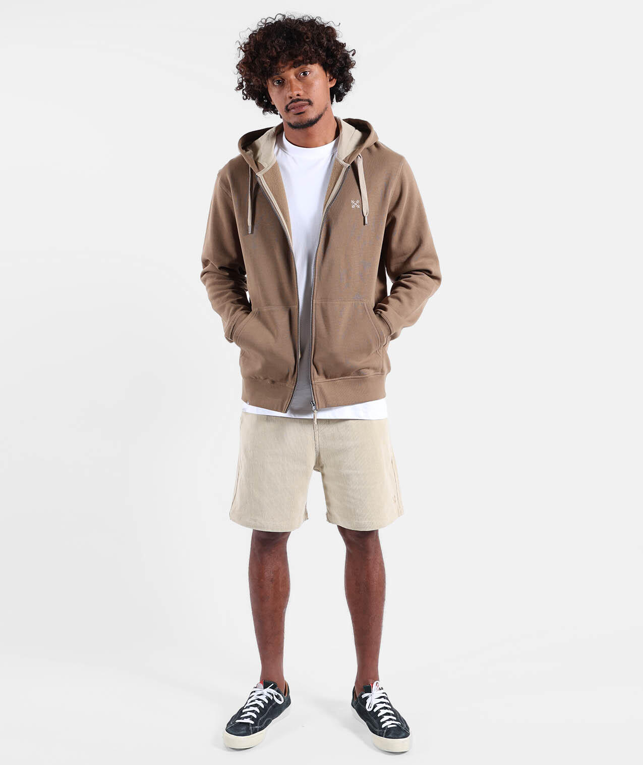Fully zipped hooded sweatshirt, ribbed edges, contrast drawstring at hood, printed half-moon, contrast inner hood lining, kangaroo pocket, brushed fleece