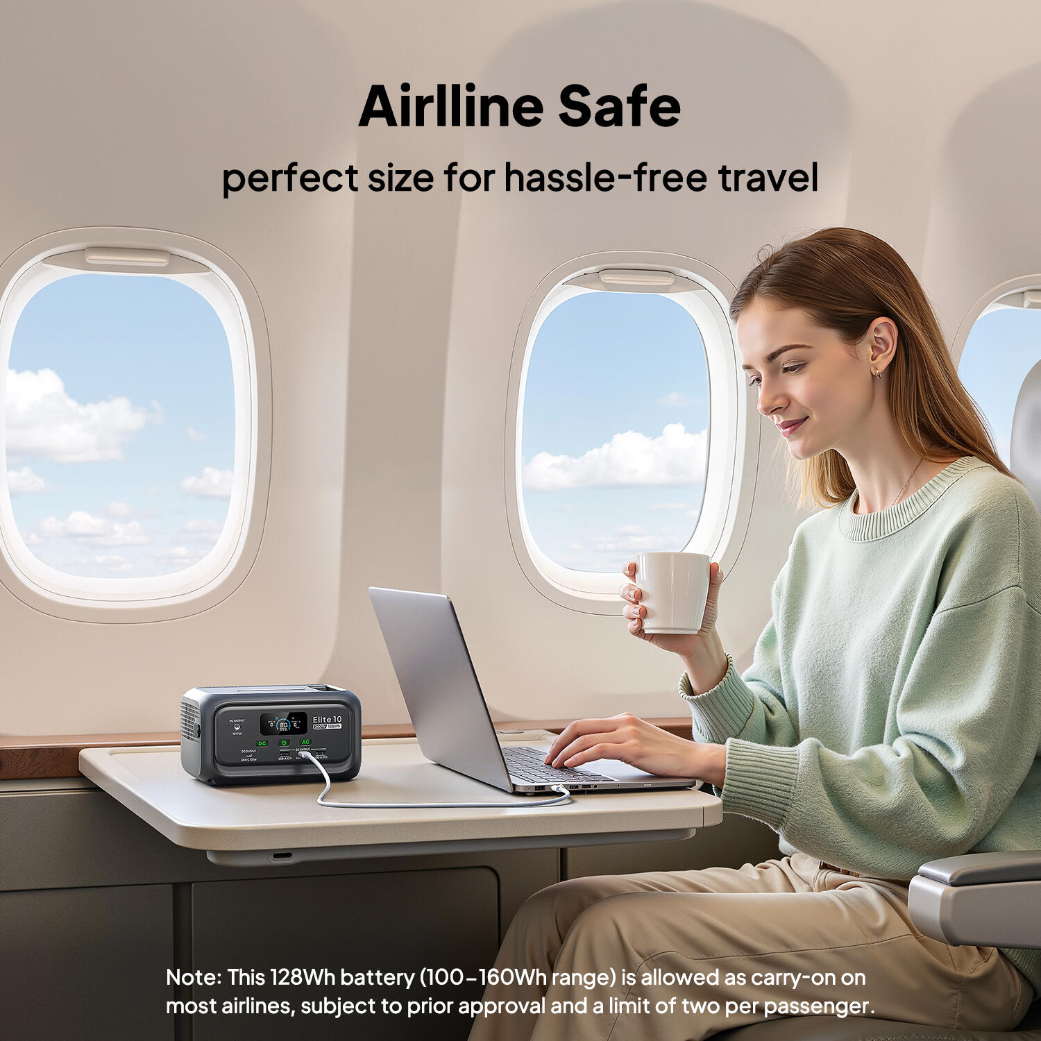 [Lightweight & Airline-Friendly] - Just 1.8kg with an ergonomic handle, this palm-sized portable power station slips easily into your backpack. With a 128Wh capacity, it falls within the 100–160Wh range and can be carried on most major airlines with prior approval (limit 2 per passenger). Perfect for travel, flights, and everyday portable power needs.