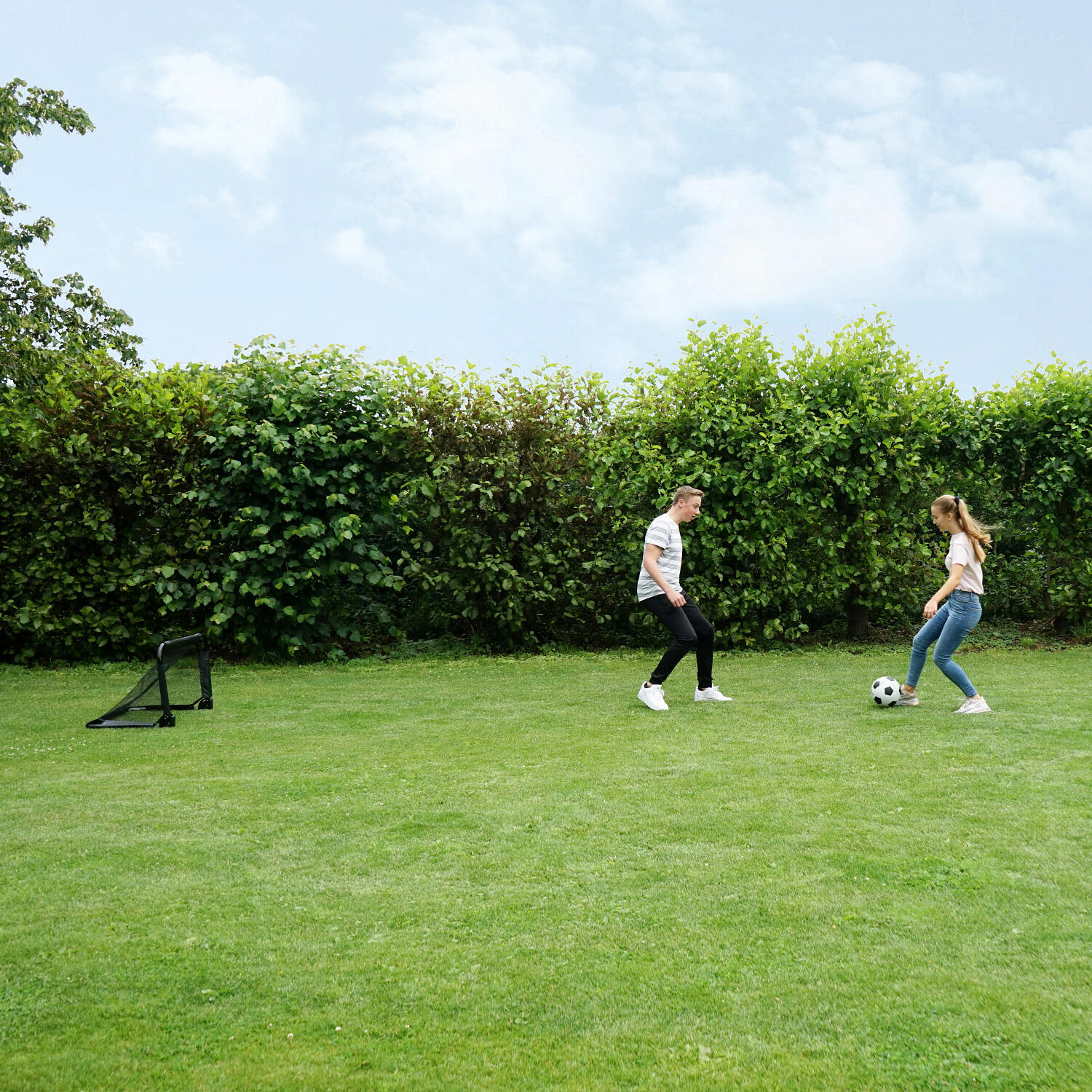 Lightweight and compact mini goals, Particularly finely woven net, Also suitable for hockey and ice hockey, Galvanised, powder-coated frame, Easy to set up and take down
