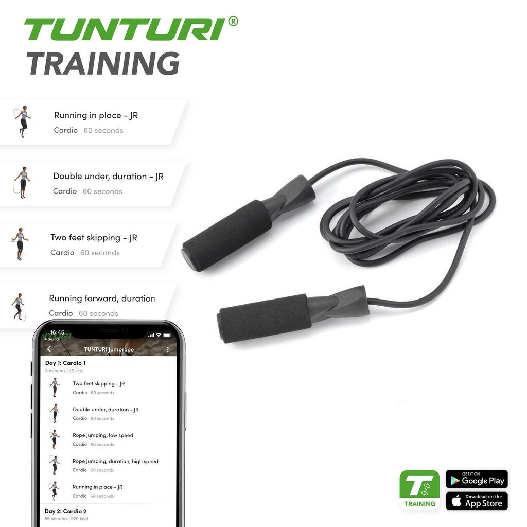 Jumping rope is one of the most effective ways to build good fitness! Get the Tunturi Fitness jump rope for your home now!
