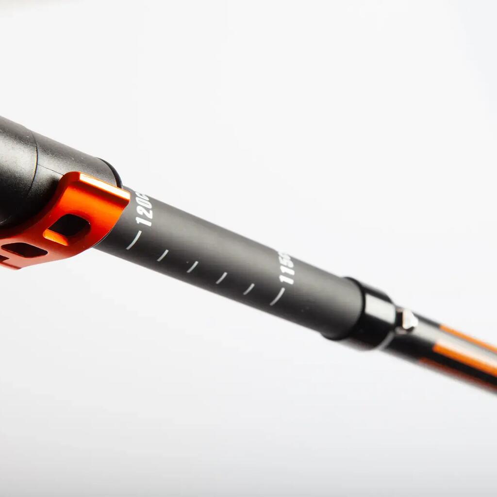 Pair of 100% carbon poles, weight 250g, adjustable from 115 to 130cm. Designed for trail running and ultra trail running. The woven carbon fibre guarantees lightness and robustness.