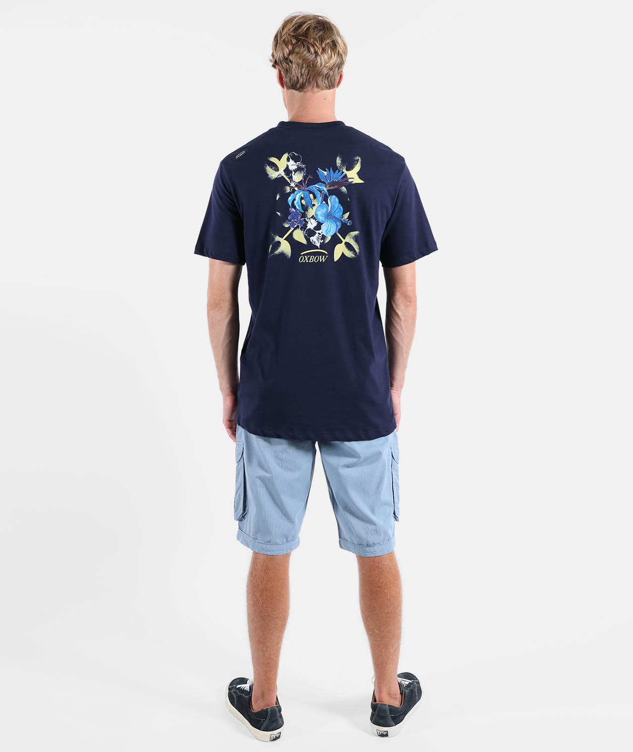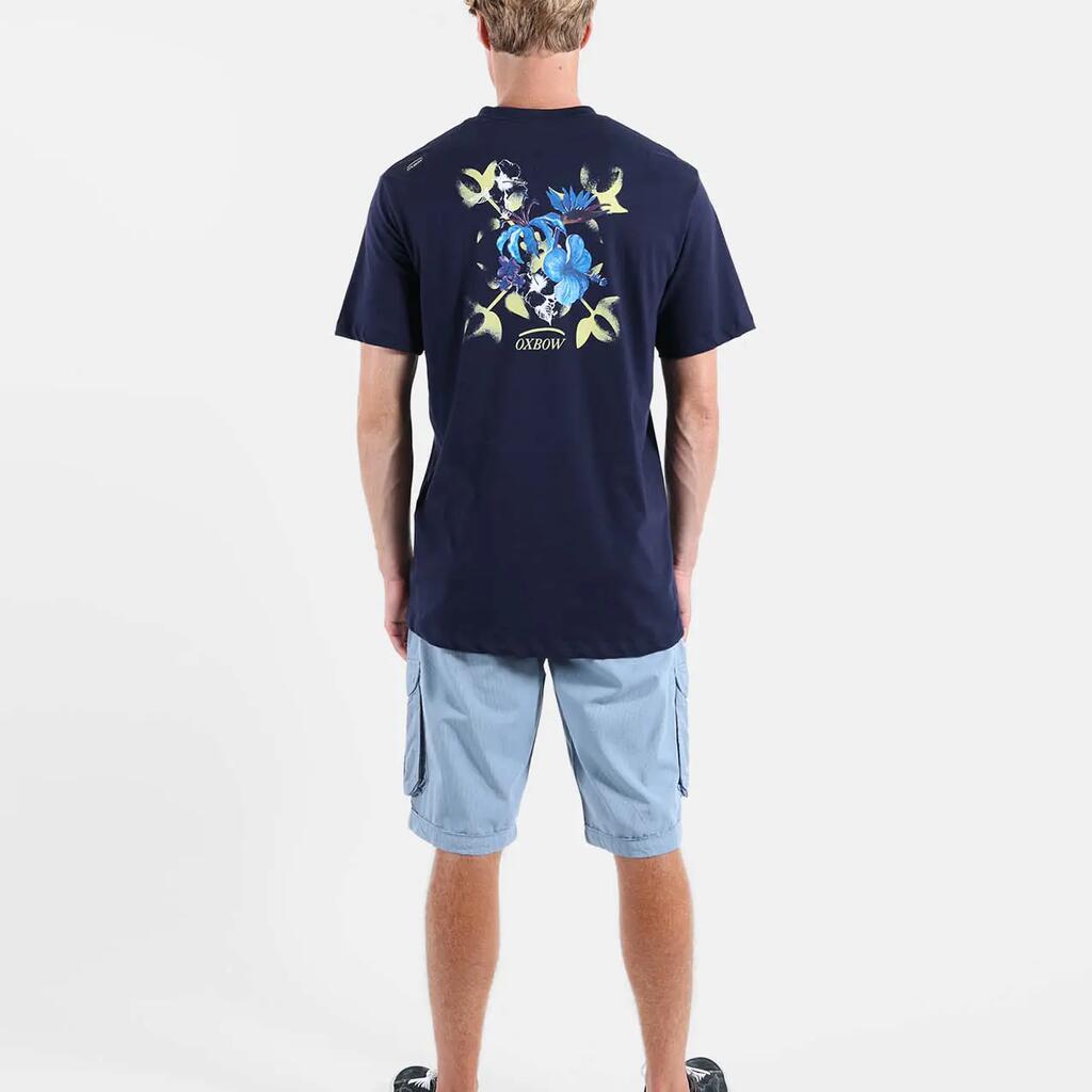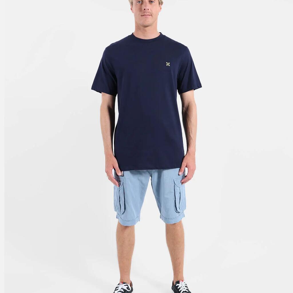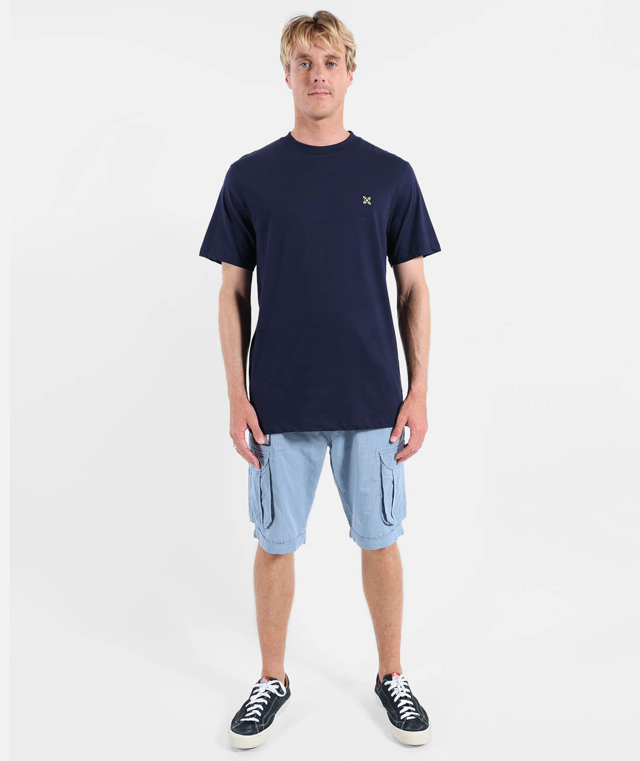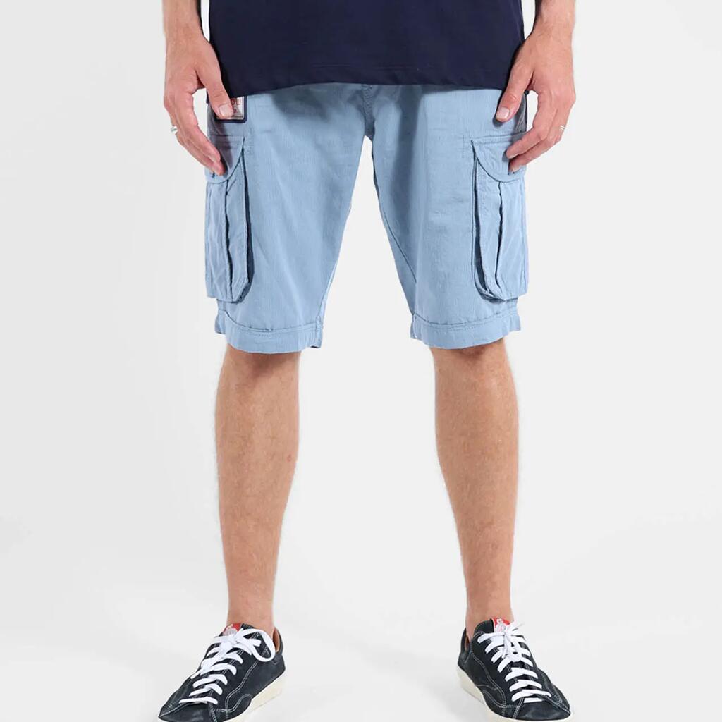 Striped bermuda shorts, braided belt with metal buckle, two back pockets and two buttoned cargo pockets, zip fly, drative label, woven stripe, length 21''/54cm
