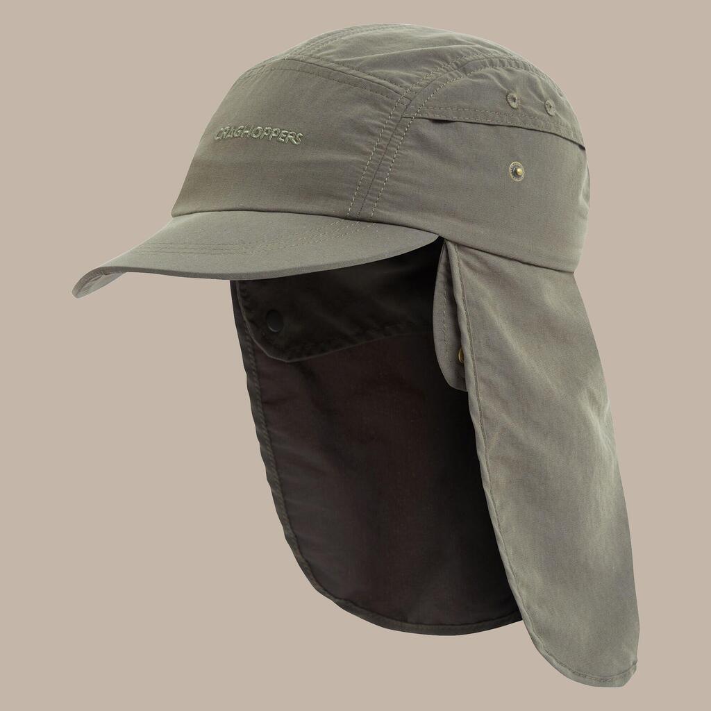 Protective sun hat from Craghoppers. This classic NosiLife insect-repellent and odour-eliminating ‘Desert Hat’ provides effective coverage from UV rays with the advantage of a handy rollaway flap to p