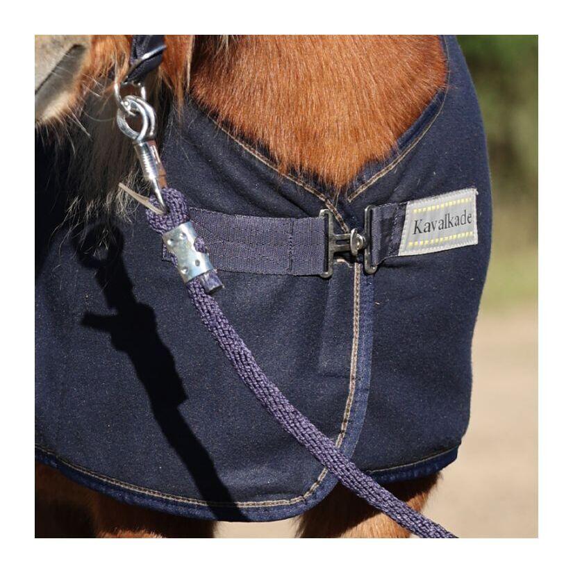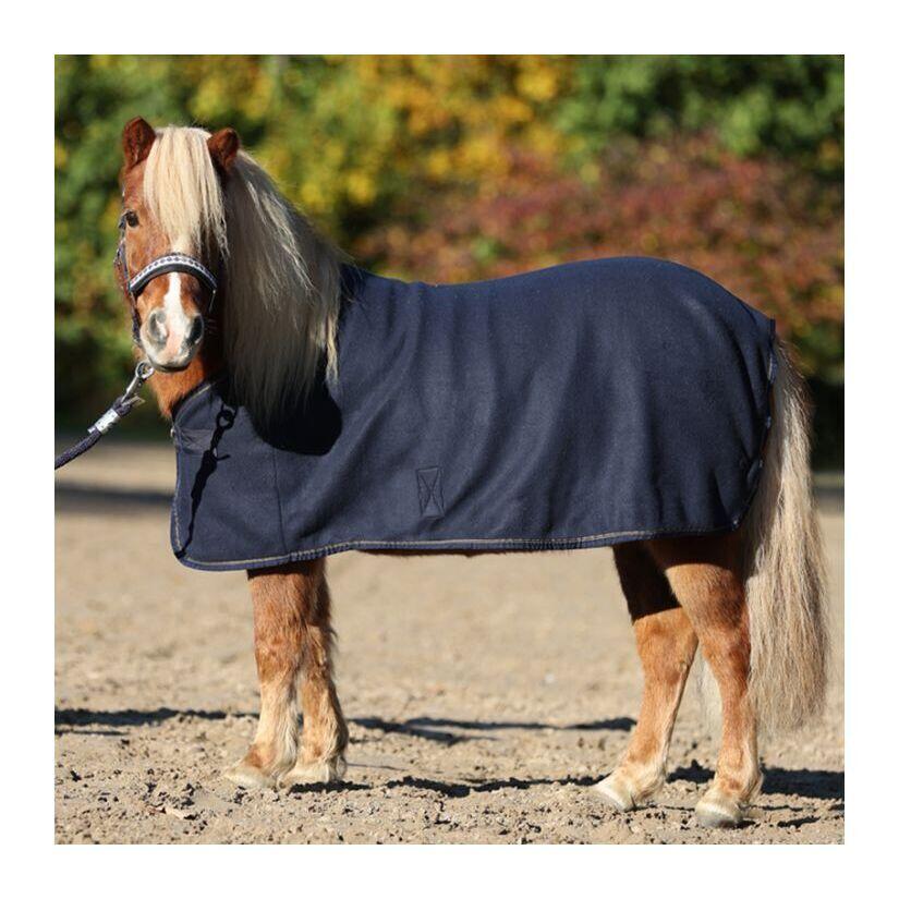 The polar cooler 'Shetty-Ecoline' offers an excellent transport of moisture to the outside. Thanks to its lightweight fleece, the cooler is ideal for winter, but also for summer. The non-deformable back seam ensures a very good fit. The border band is made of colored stripes.- fleece cooler for Shetty- very good fit thanks to the back seam- excellent moisture transport- rotary hook closure with additional velcro- removable belly strap- ideal for embroideryAdditional informationSize: 80, 90, 100 cm (Shetty height)Material: 100% polyester fleeceColor: navyUsageThis cooler is ideal for daily use. After riding, the cooler is loosely placed on the horse's rump. This way, the horse comes out without hypothermia. The cooler is absorbed from the inside by the fleece and transported to the outside. A film of moisture is created, which does not seep into the fleece, but remains on the outside of the cooler.Care instructionsMachine wash up to 30°C. Delicate or gentle cycle.