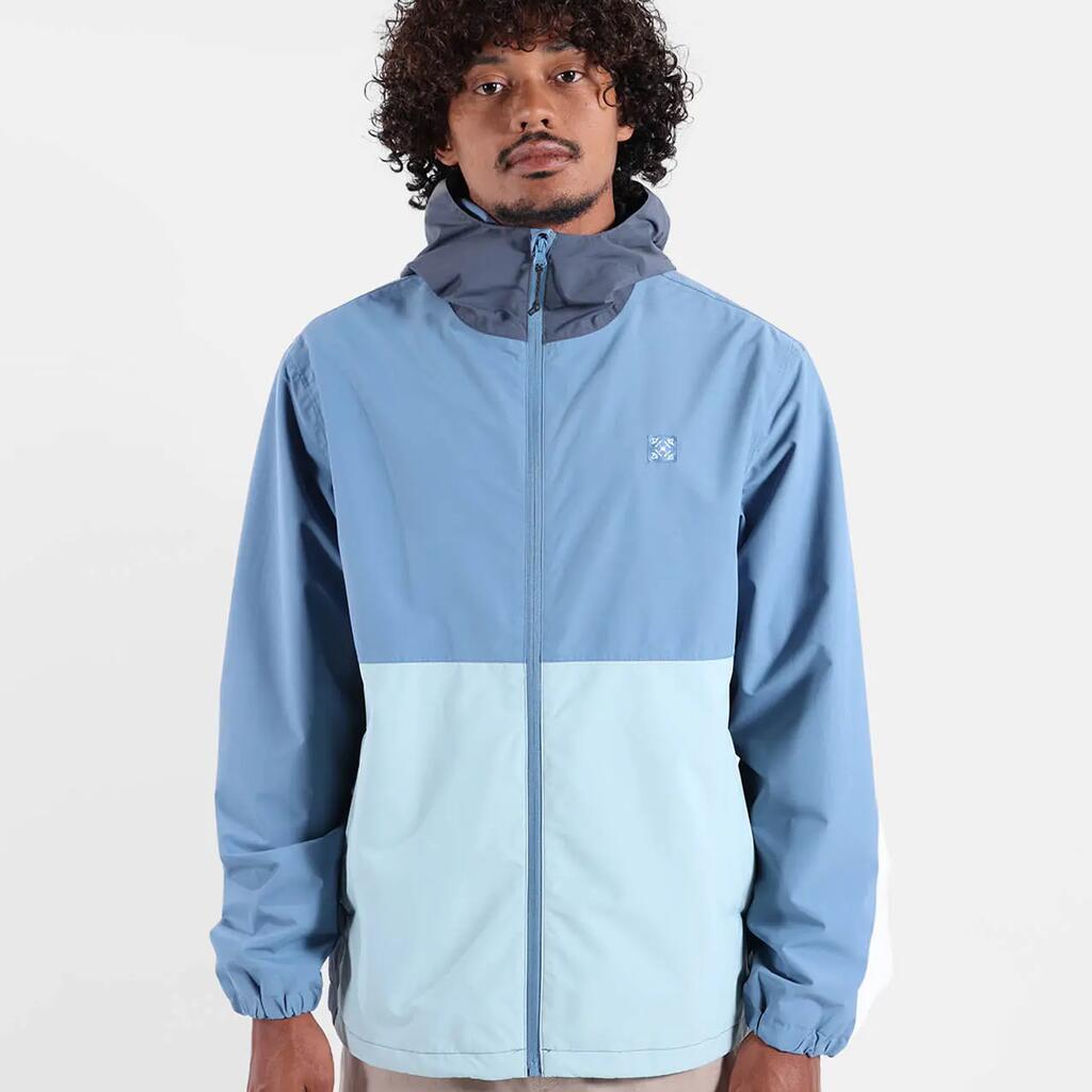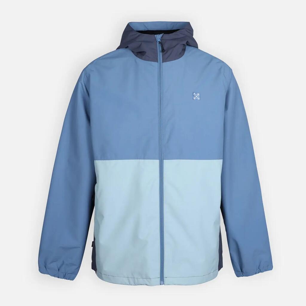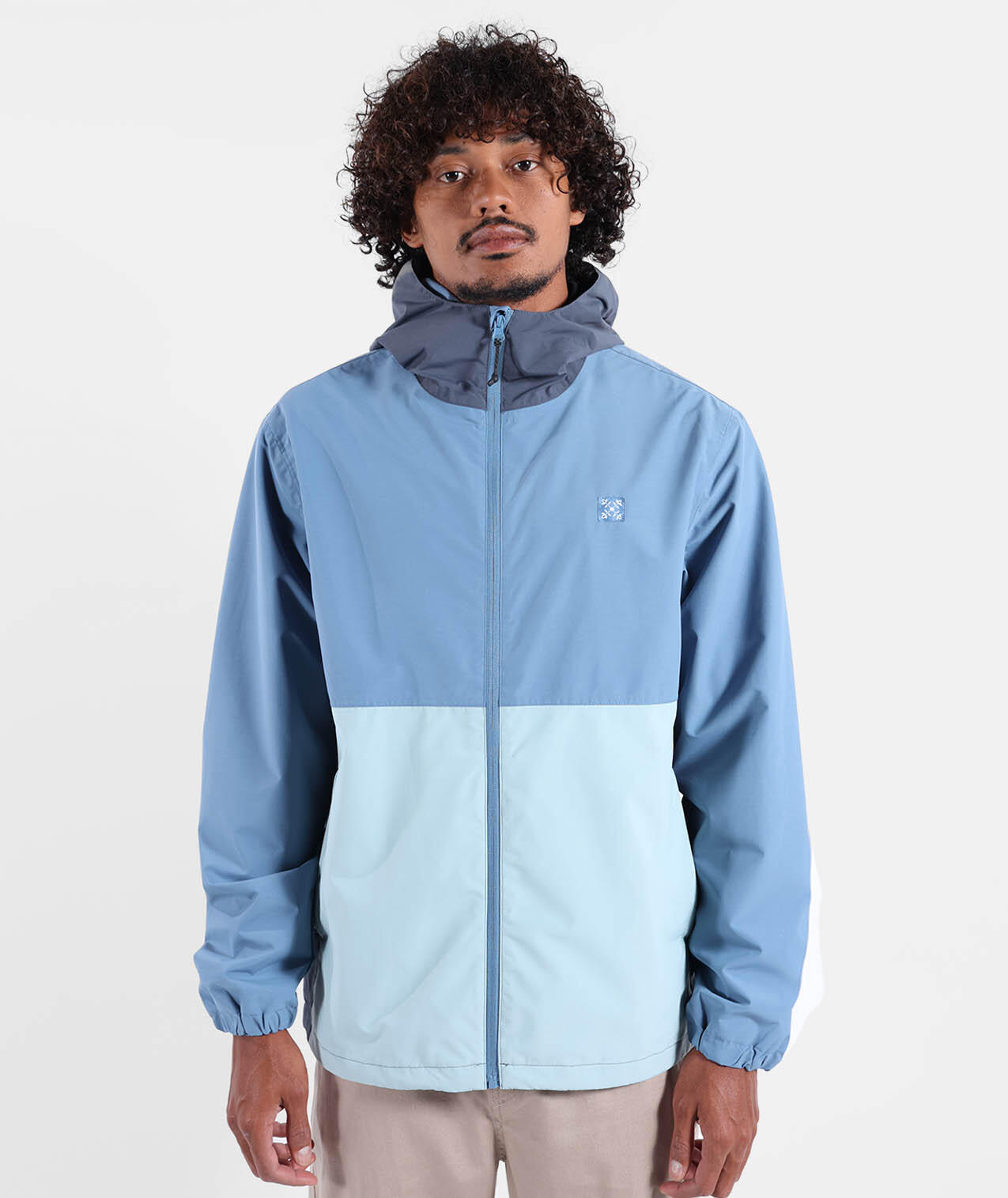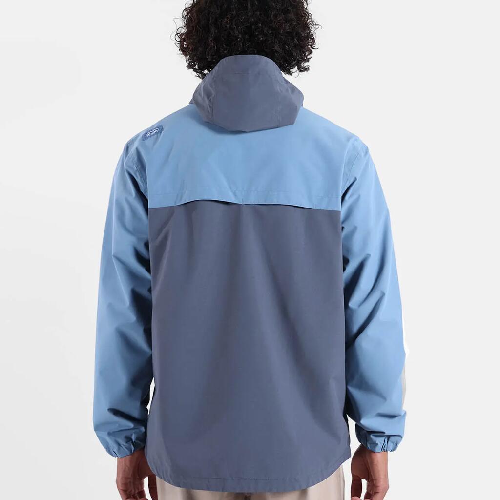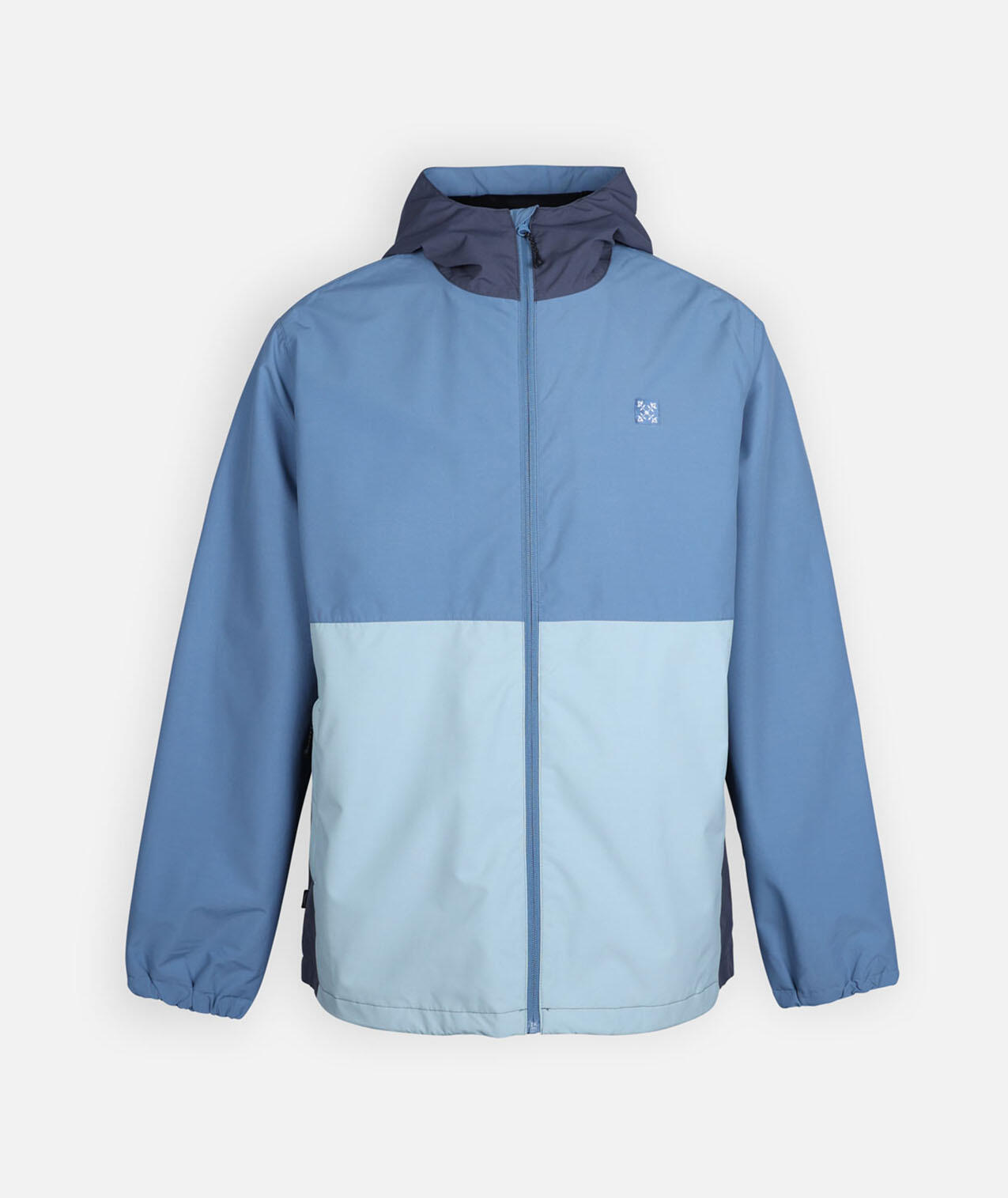 Waterproof and breathable jacket with adjustable hood, elastic hem and cuffs, sealed seams, zip pockets and printed inner lining, colorblock.