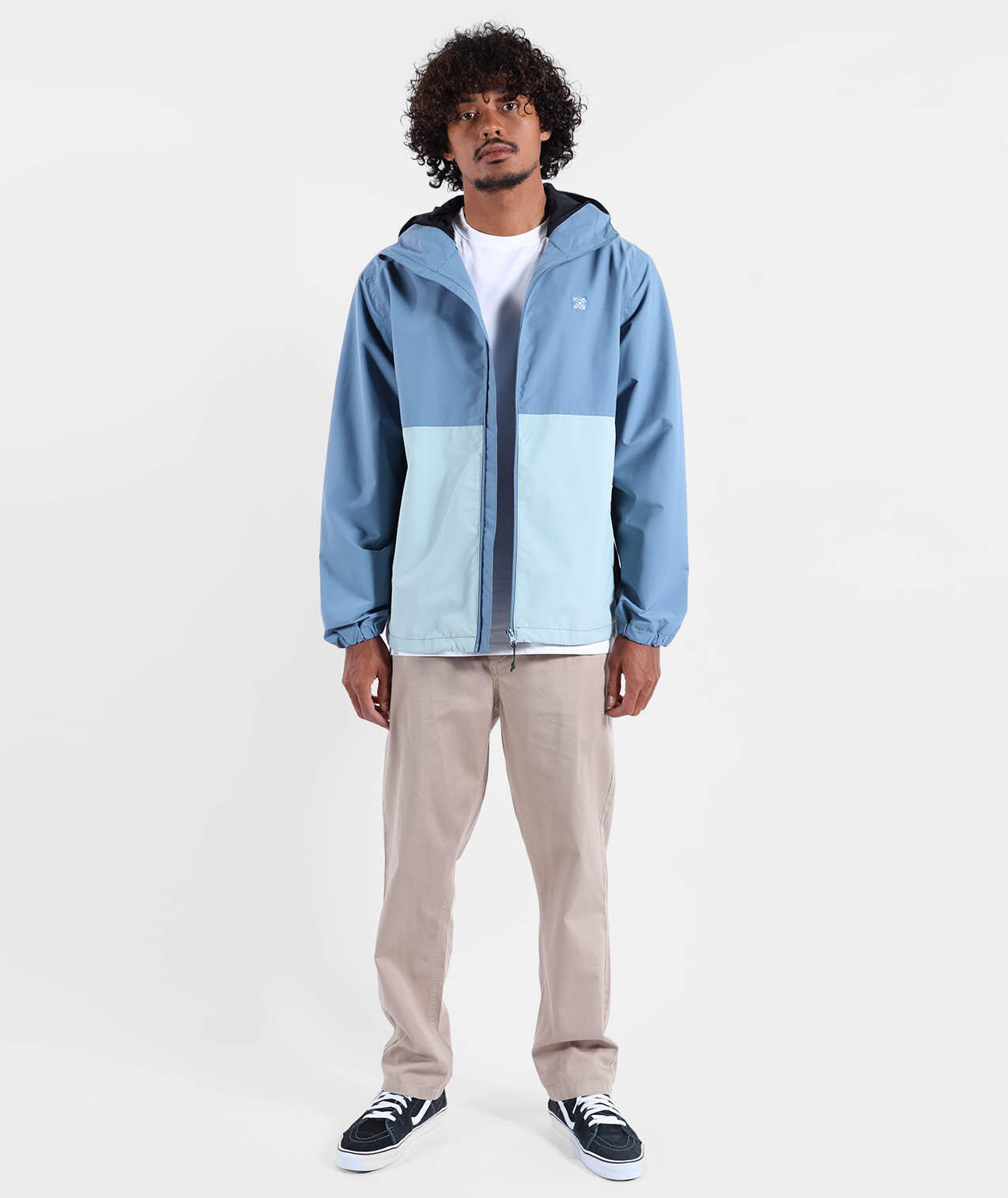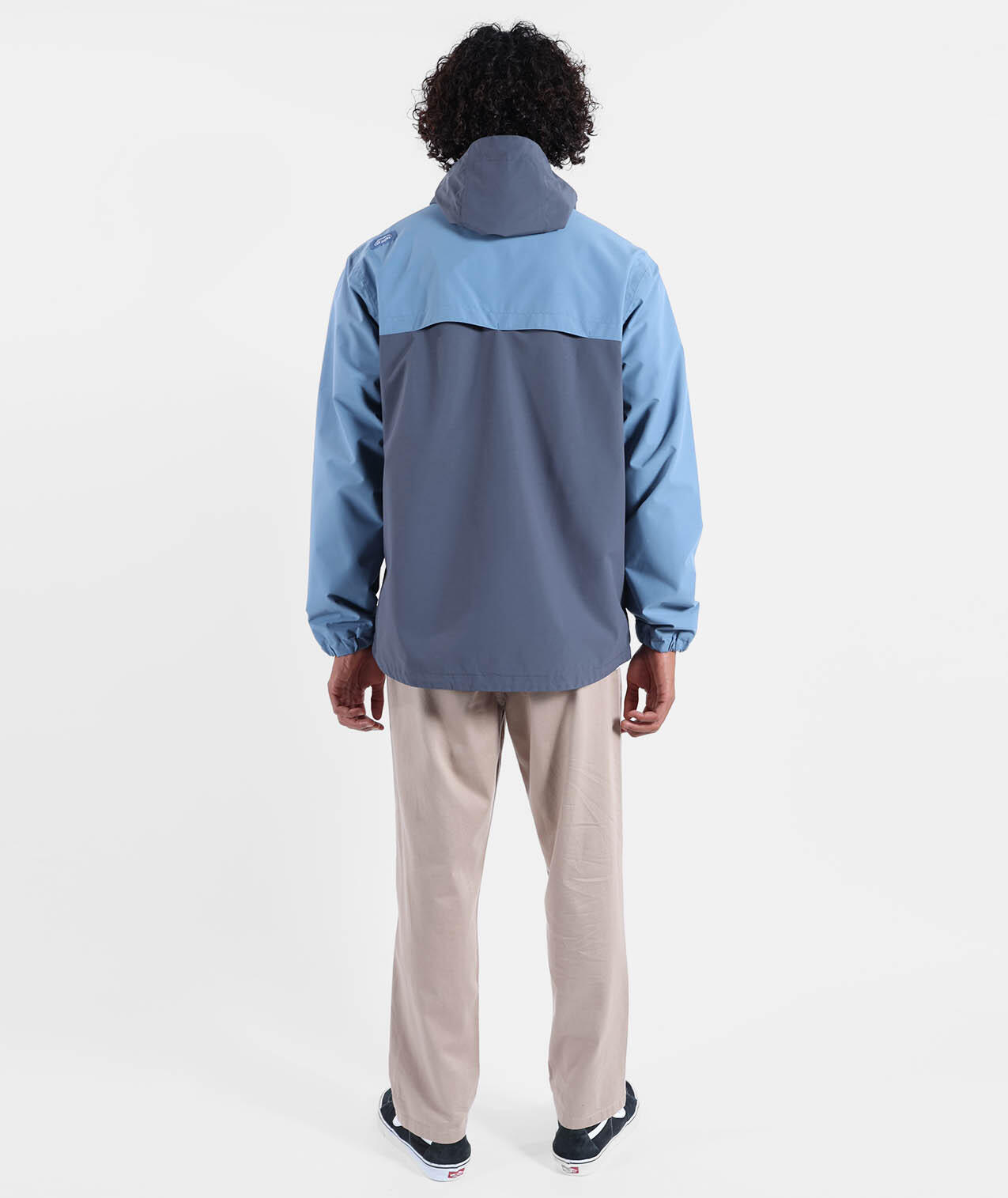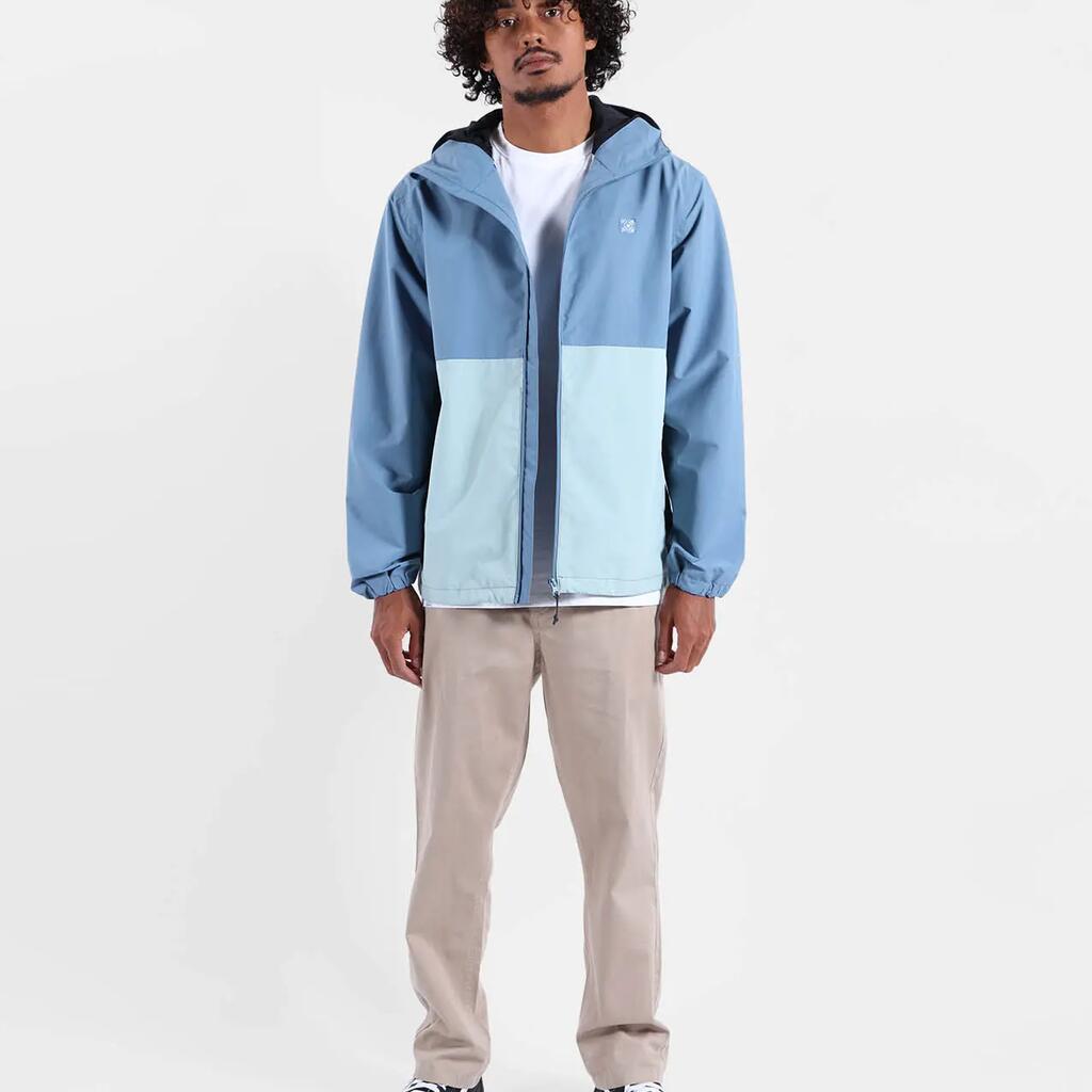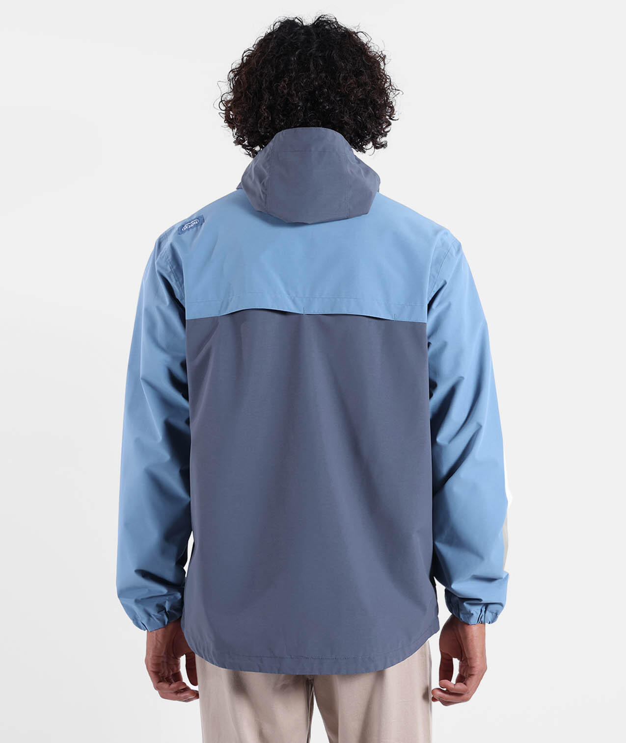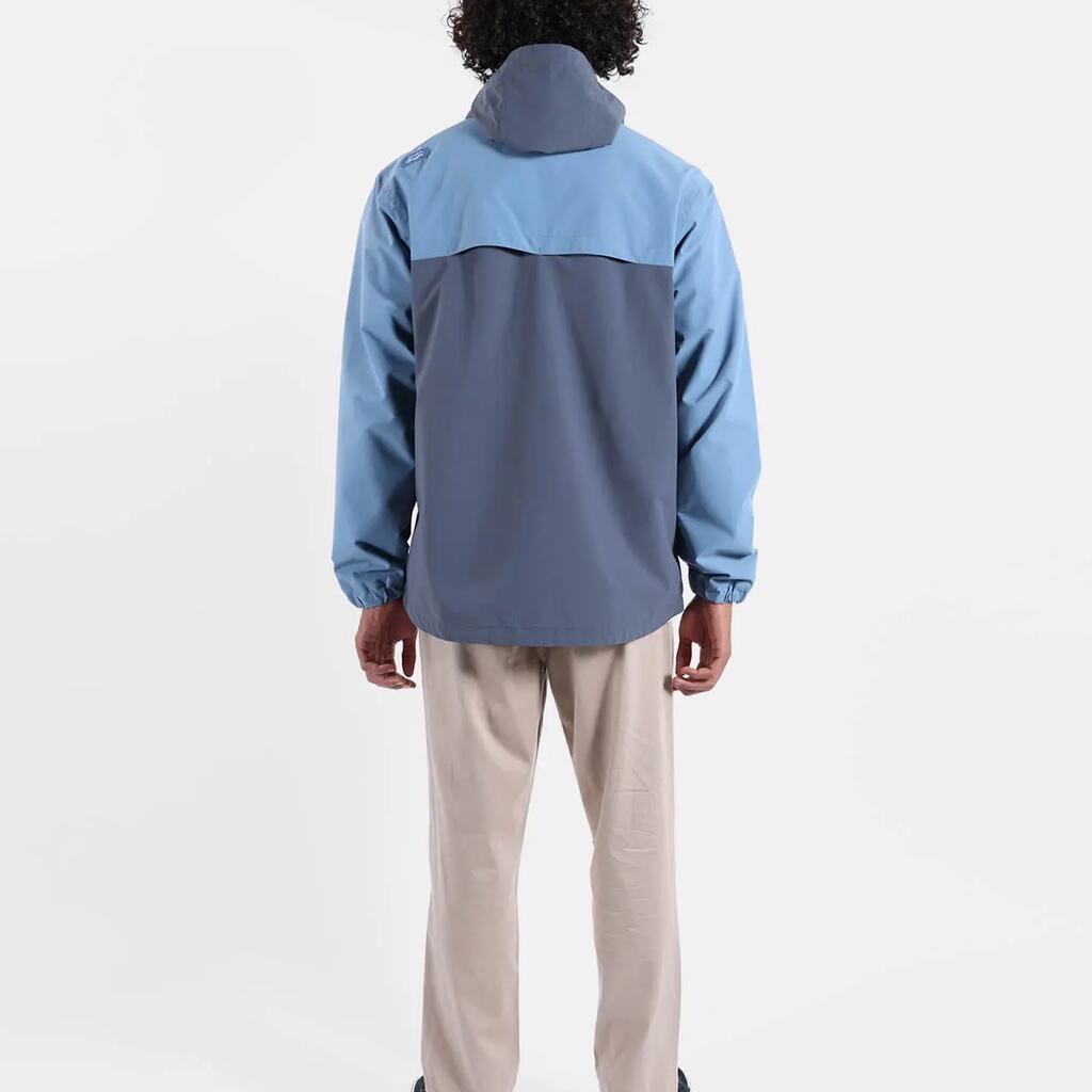 Waterproof and breathable jacket with adjustable hood, elastic hem and cuffs, sealed seams, zip pockets and printed inner lining, colorblock.