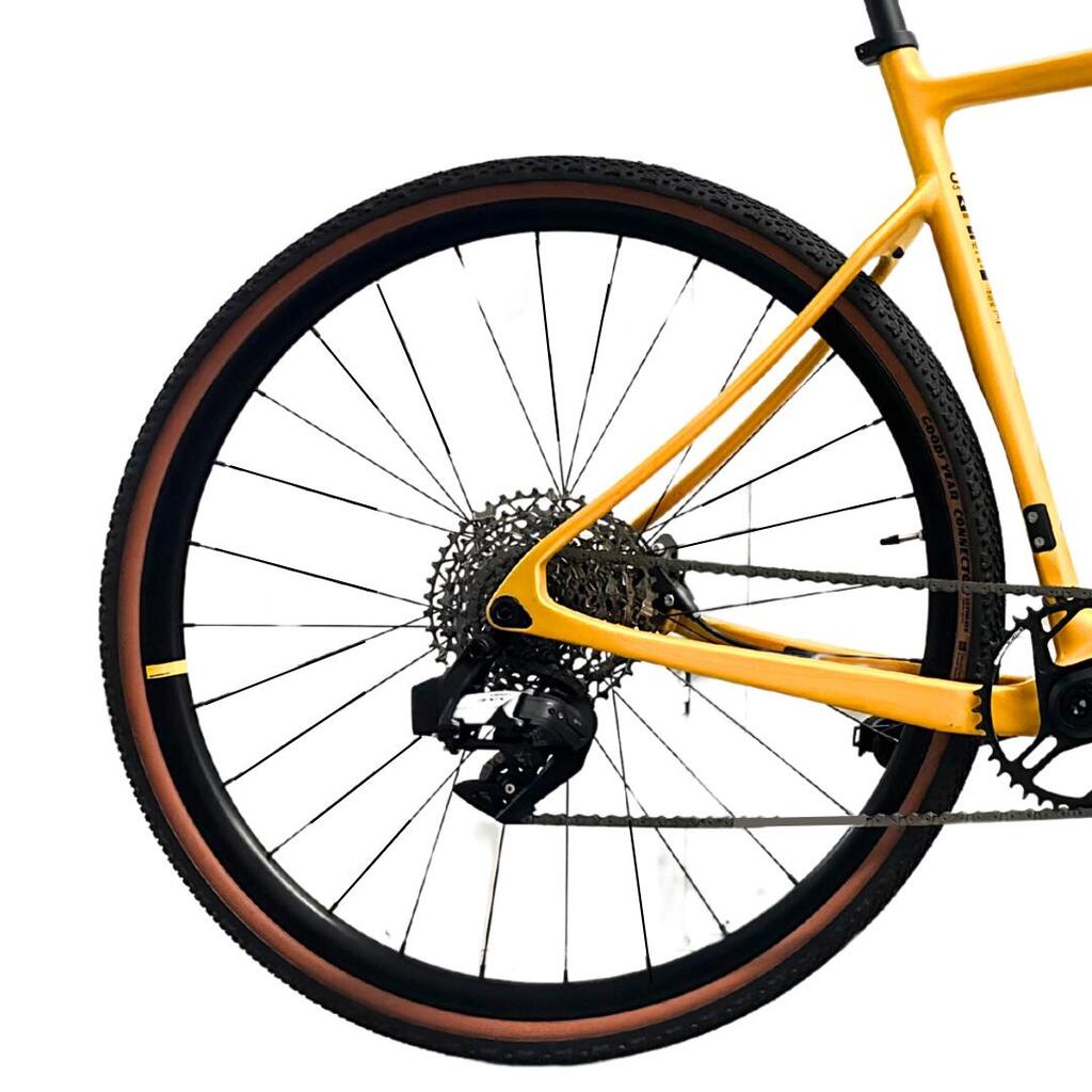 The bike is in EXCELLENT condition, ALWAYS DISPLAYED IN A SHOP. It has no cosmetic signs of use. There are no dents or scratches. This bike has a SRAM AXS 12-speed groupset with disc brakes. These technologically innovative, pre-owned bikes are specially designed for maximum fun with the authentic "gravel bike" spirit: friendly competition, technical trails, long rides, the occasional race, lots of laughs, and plenty of naature... Pure gravel biking!