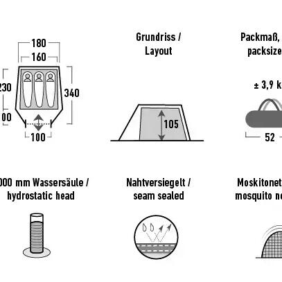 High Peak Lightweight Tunnel Tent Kite 3, only 3.3 kg, 3000 mm waterproof