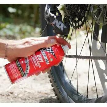 Dry Lube is particularly recommended for on-road or off-road riding in dry, dirty and dusty environments, but holds up well in moderately wet conditions. Dry Lube can also be used on derailleurs, shifters, cables and brake pivot points. Finish Line dry lubricant ensures optimum drivetrain efficiency without attracting excessive amounts of abrasive contaminants.