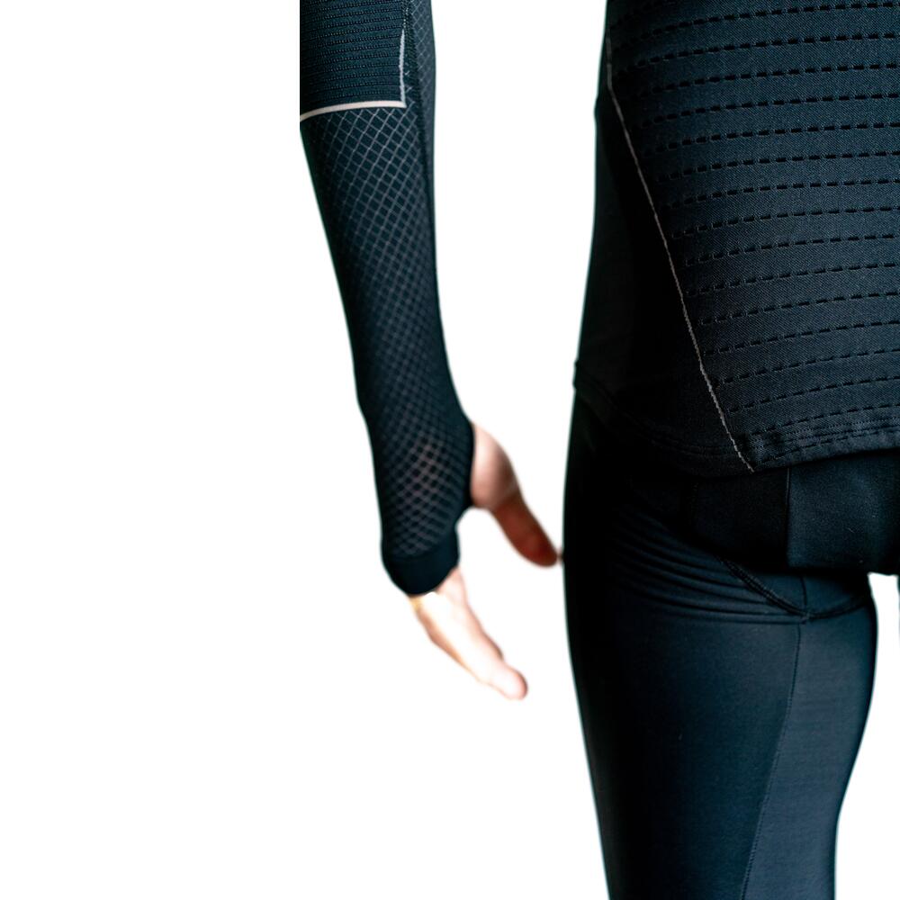 'The most important garment is the one in contact with the skin. In winter many cyclists (myself included) like to wear thick, light jackets. The problem with these jackets (and winter jackets) is the poor thermal management especially when wet. I've been training as a pro cyclist most of my life wondering why (despite being sponsored by premium clothing brands) I'd end up wet, freezing and uncomfortable after 1 or 2 hours of riding in winter. It seems that no one is designing a baselayer for winter rides. I designed the BASEZ with my own fabrics where the air pockets are trapped by the design of the baselayer. During a cycling trip all parts of the body have a different temperature, humidity and comfort. On the Basez, the chest and front arms are thicker and warmer to protect against the wind. The Basez has a longer back section to cover and insulate the lower back near the saddle.'