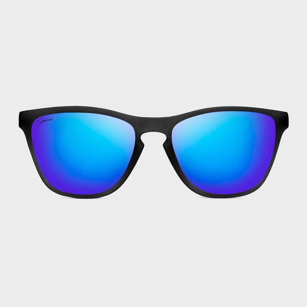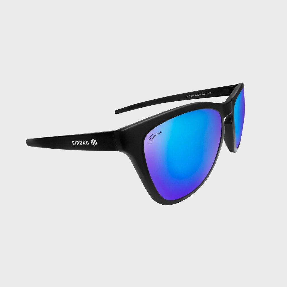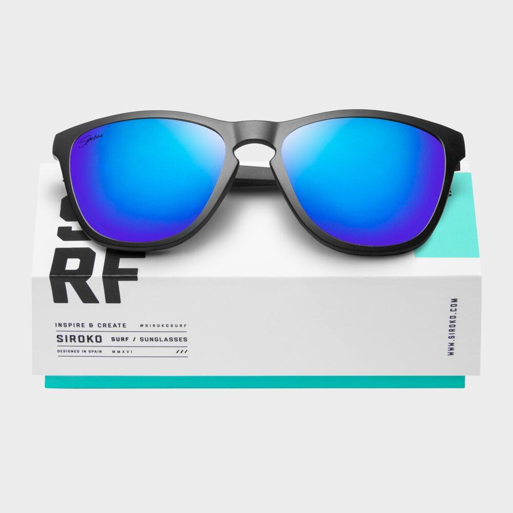 Siroko Hanalei sport sunglasses unisex with black polycarbonate frame, dark blue TAC polarised mirror lenses and UV400 protection — ideal for surfing and outdoor activities.