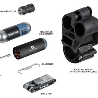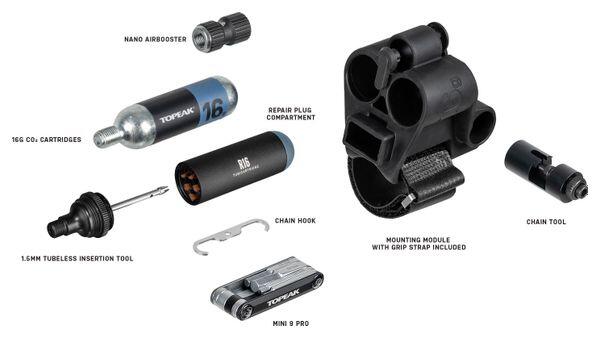 This compact tubeless tire repair, chain repair and CO2 inflation kit includes a Nano AirBooster CO2 inflator, a TubiCartridge R16 CO2 cartridge, a 16 g CO2 cartridge, a CNC-machined 9-function...