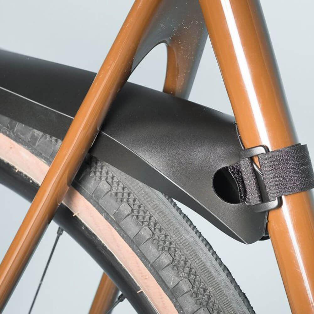 It's dirty job but FENDOR BENDOR BIG gets the job done! Maximum protection for gravel or MTB. The all new attachment makes fitting without tools a breeze, to virtually every bike in just a few seconds. Universal fit With the newly developed attachment construction, FENDOR BENDOR BIG is now completely self supported and therefore possible to mount on bikes without the sideway support of the seat stays or the support of a brake bridge. You could also mount it above your caliper brake to avoid interference with the brake. For the rough stuff It has been developed for gravel and adventure biking but is also a great protector for CX and Mountain Bikes. With greater length and width, it's well suited for the longer wheelbase normally associated with this segment of bikes. A single midway fold still allows for convenient minimal storage but with maximum sturdiness for the rocky roads ahead. Frame protection by 3M Both models come with upgraded frame protection stickers from 3M. A material originally developed to protect the helicopter propeller blades from the sand storms in the desert, it makes sure that no scratches will be made to your beloved bike by the FENDOR BENDOR. For front protection, consider adding a SPEED MULLET Regular. Specification • Easy to mount, no tools required • Perfect for Gravel or MTB • Super lightweight, only 61 grams • Longlasting, durable materials • Suitable for tire widths between 32-55 mm • 555x80 mm (effective) • Made in Sweden