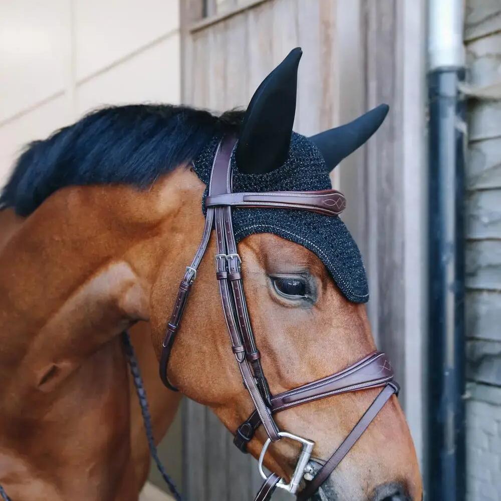 Our Fly Veil Sparkling is a combination of the modern American look and Kentucky Horsewear’s expertise. ,Fly protection with American look ,Soundproof ears ,Sparkling yarn ,Quality knitting by