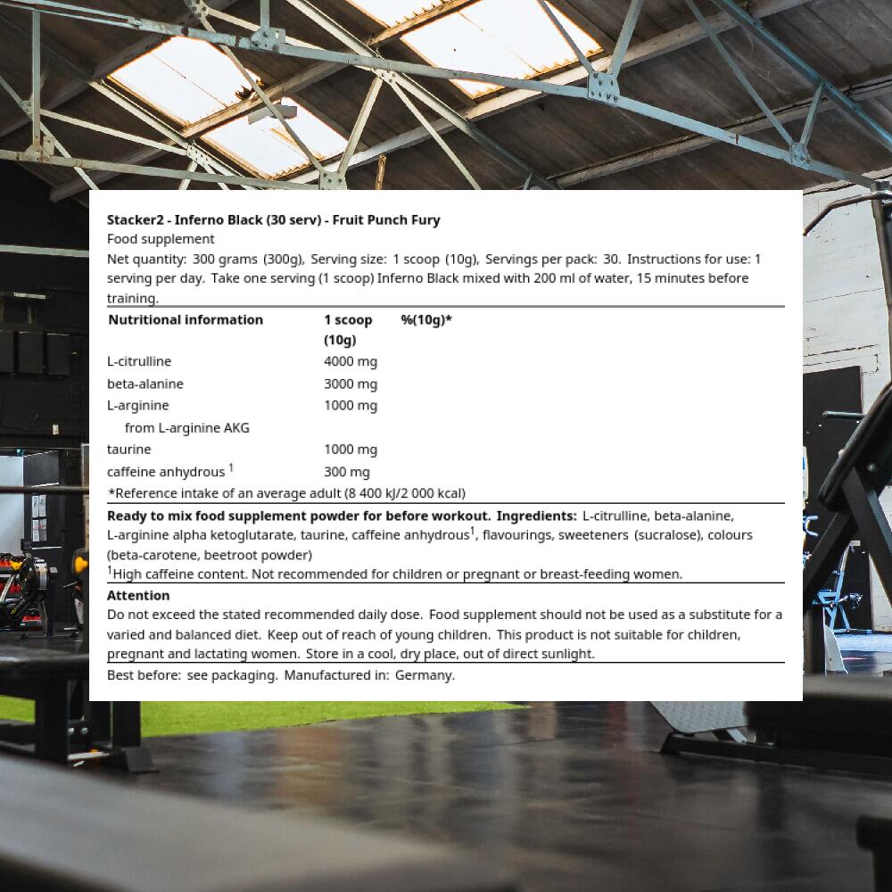 Stacker2 Inferno Black (30 serv) Fruit Punch Fury - Pre-Workout